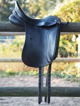 Piękne, zadbane, trzyletnie, skórzane siodło ujeżdżeniowe. Wbudowany jest szeroki…