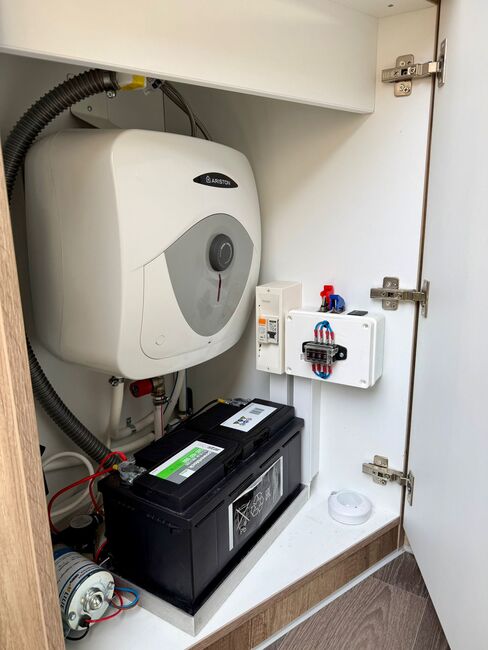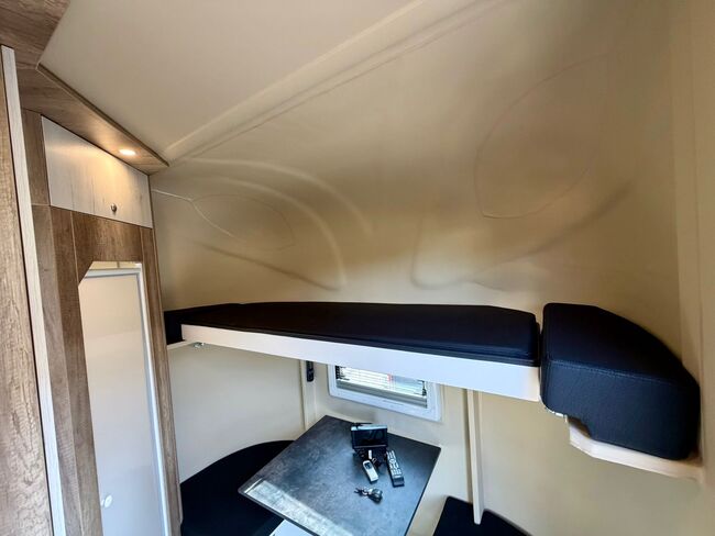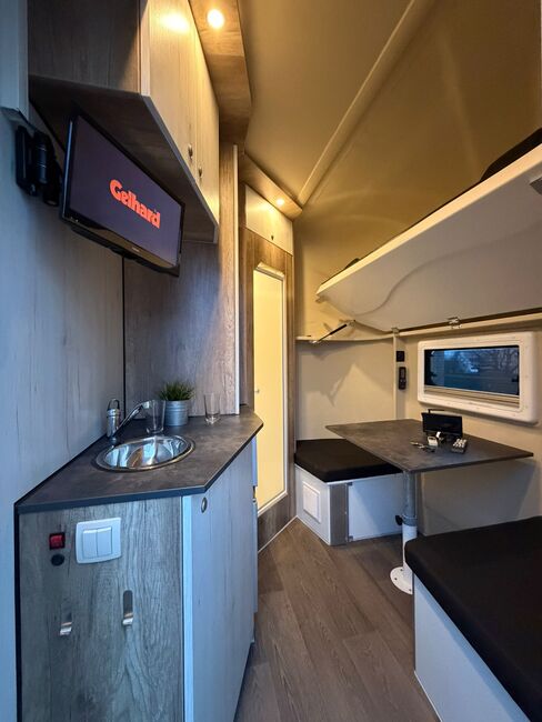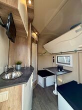 - Klimatyzacja - ogrzewanie - TV - dwa łóżka - prysznic - mikrofalówka - lodówka - umywalka - oświetlenie LED - Skórzany zestaw wypoczynkowy - stół - Okno na zawiasach z roletą - Bezprzewodowe zasilanie bateryjne lub z podłączeniem do zasilania - zbiornik na wodę