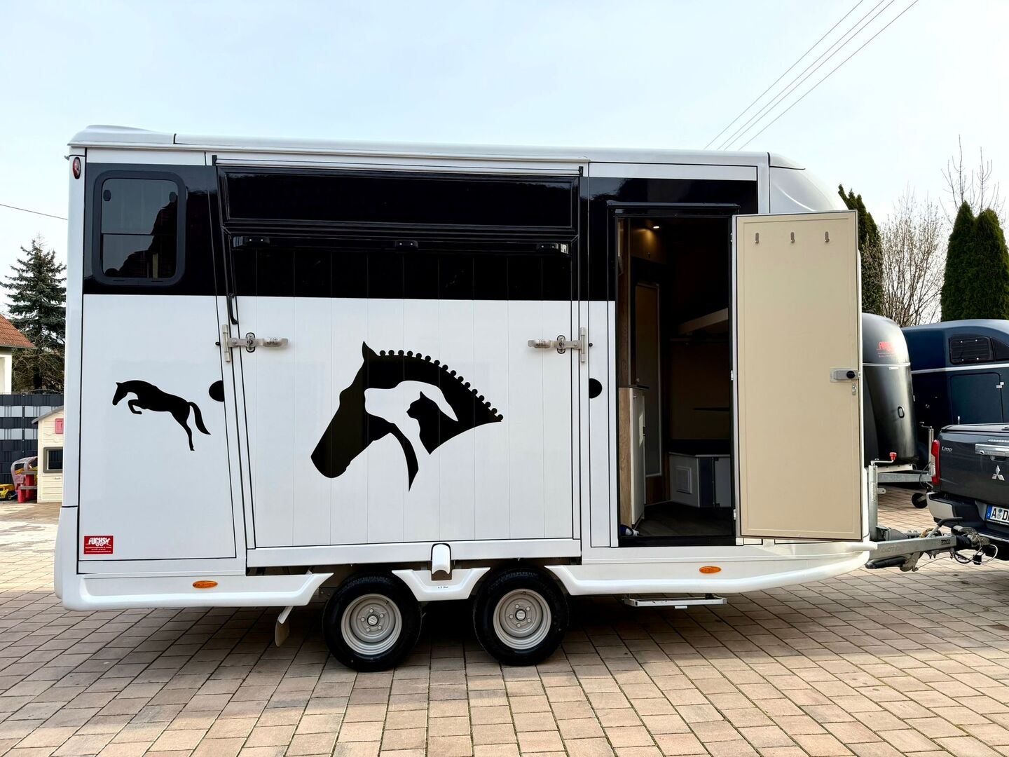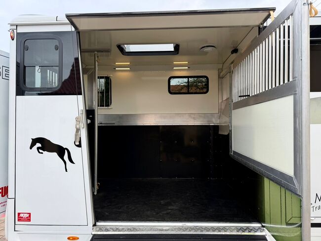 - Pierwsza rejestracja 10/2023 - Masa własna 1946 kg - Dopuszczalna masa całkowita 3500 kg - Maks. obciążenie dyszla 150 kg - HU do listopada 2027 r. - Rampa boczna - Separacja ogierów / wersja z ogierem - Luk dachowy - Elektryczny system wentylacji w przedziale dla koni - 3 okna w przedziale dla koni - 2 składane stopnie - ALUMINIOWA PODŁOGA - Gumowa podłoga - Przesuwana lub całkowicie zdejmowana ścianka działowa - Oś tandemowa - Podwozie z amortyzatorami do prędkości 100 km/h