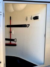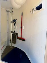 - Pomieszczenie na siodło z wysuwanymi uchwytami na siodło, miotła, łopata