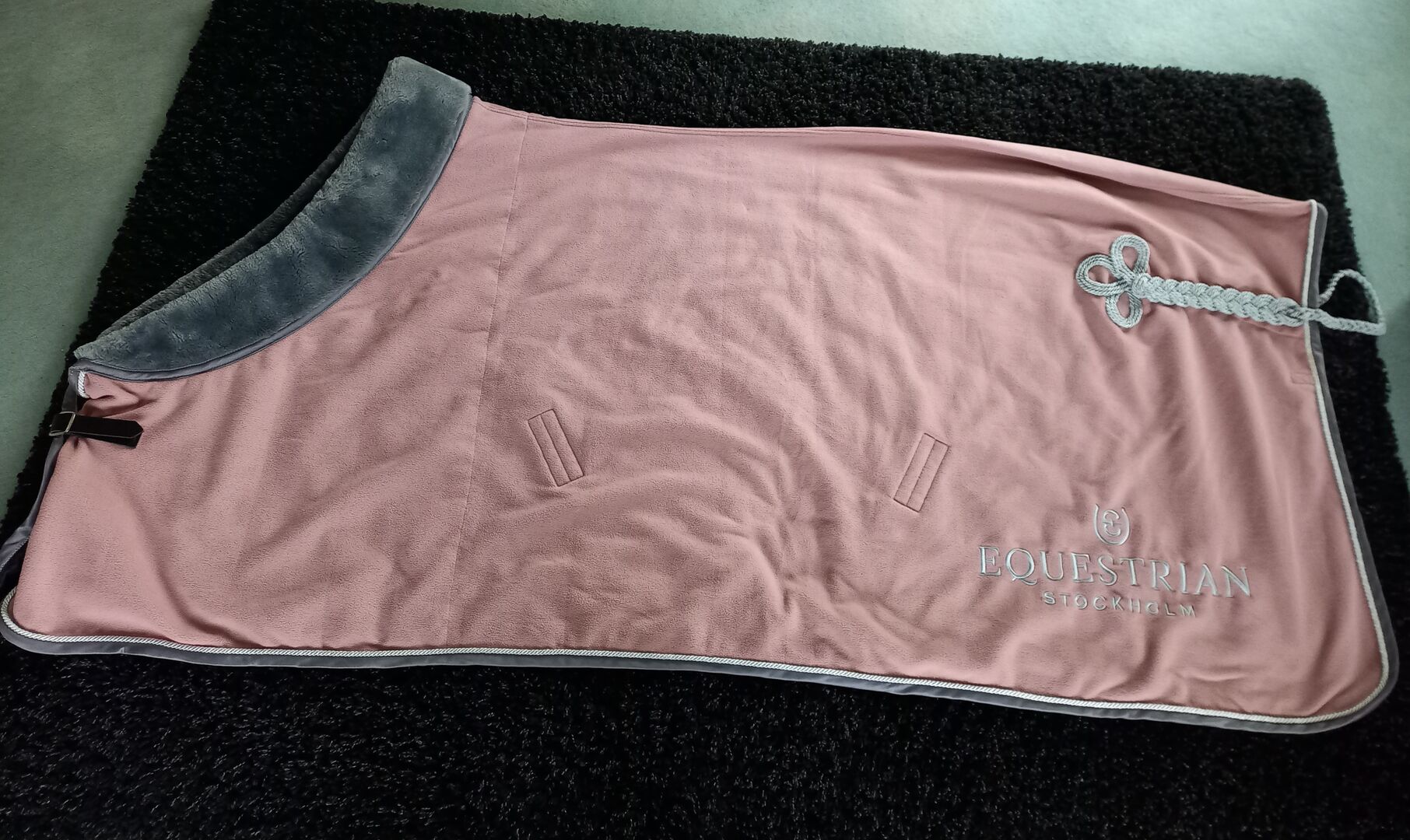 ⭐️Equestrian Stockholm/NEW Zestaw koc + Halfter⭐️ - NOWY zestaw marki Equestrian Stockholm, składający się z derki potowej i haltera z linką wiodącą. W pięknym ciepłym odcieniu różu z futerkiem w średnim odcieniu szarości. Używany 1 x do zdjęć, dlatego absolutnie NOWY! Preferowana sprzedaż jako komplet; możliwa sprzedaż indywidualna.