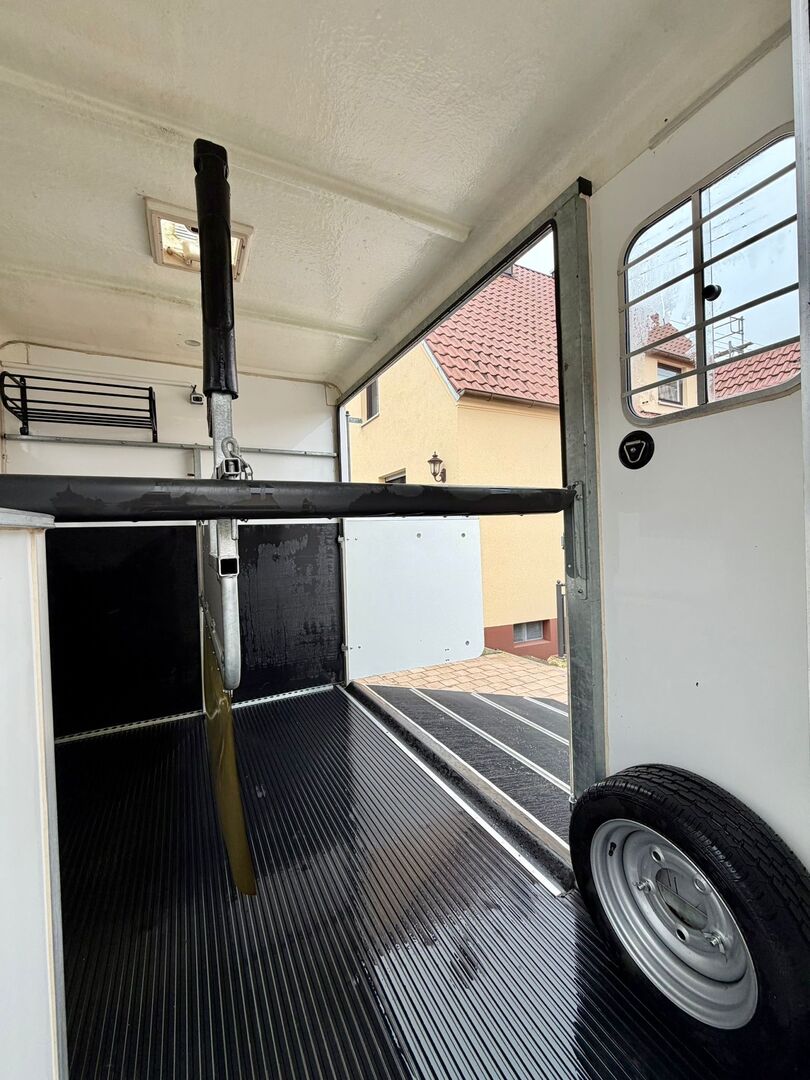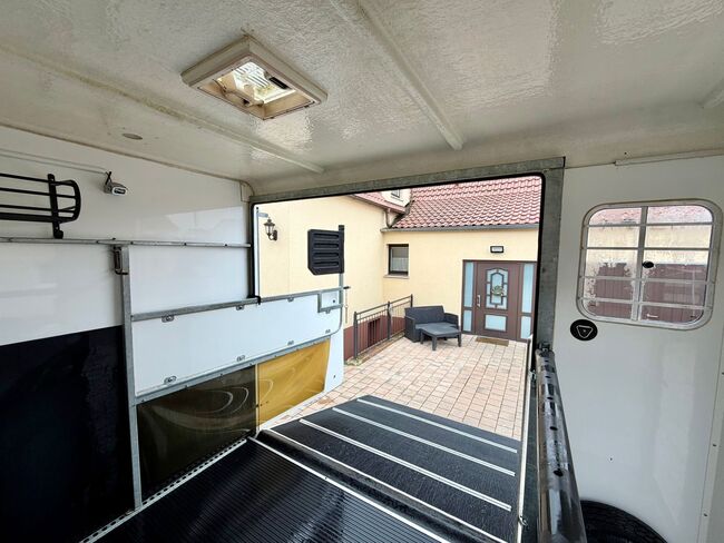 - Pierwsza rejestracja 06/2018 - Masa własna 1380 kg - Dopuszczalna masa całkowita 3000 kg - Maks. obciążenie dyszla 150 kg - HU do grudnia 2027 r. - Automatyczne koło kopiujące - Zamykane oddzielne pomieszczenie na sprzęt z uchwytem na siodło i uzdy - Kilka przesuwnych okien - Wyłaz dachowy - Okno przy drzwiach wejściowych - Bardzo jasny - Tylne drzwi wejściowe można zablokować - Boczna rampa załadunkowa ze stopniami - Obrotowa środkowa ścianka działowa z możliwością wielostopniowej regulacji - ALUMINIOWA PODŁOGA - Gumowa podłoga - Oświetlenie wewnętrzne - Zabezpieczenie stopni - Koło zapasowe - Kamera wewnętrzna z monitorem - Opony od 2024 r. - Podwozie z amortyzatorem dla homologacji 100 km/h