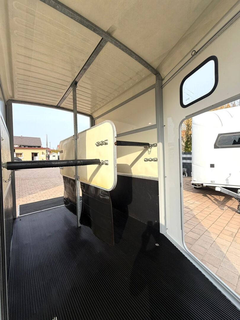 - Pierwsza rejestracja 04/2015 - Masa własna 930 kg - Masa całkowita pojazdu 2600 kg - Maks. obciążenie dyszla 150 kg - HU do kwietnia 2027 r. - Podwozie z amortyzatorami do homologacji 100 km/h - Opony od 2024 r. - Wyjście z przodu - Okno przednie - Wyłaz dachowy - Całkowicie zdejmowana ścianka działowa z PVC z regulowaną belką obrotową - Wyrównywacz kucyków - ALUMINIOWA PODŁOGA - Gumowa podłoga - Składane okno z tyłu - Składane okno przy przednim wyjściu