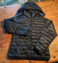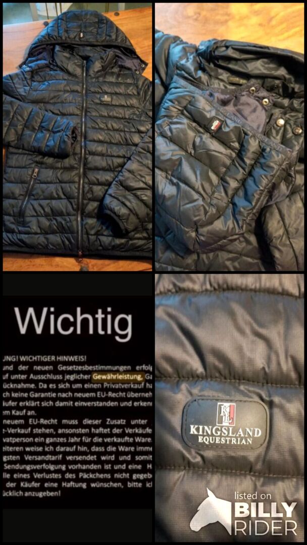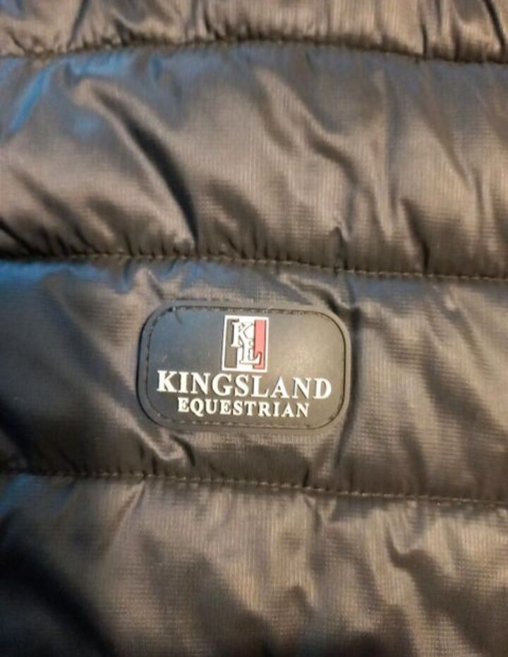 Bardzo dobrze zachowana granatowa pikowana kurtka marki Kingsland w rozmiarze M producenta. Posiada dwukierunkowy zamek błyskawiczny i dwie przednie kieszenie na suwak. Odpinany kaptur. Stan idealny! Nowa cena wynosiła 189 €.
