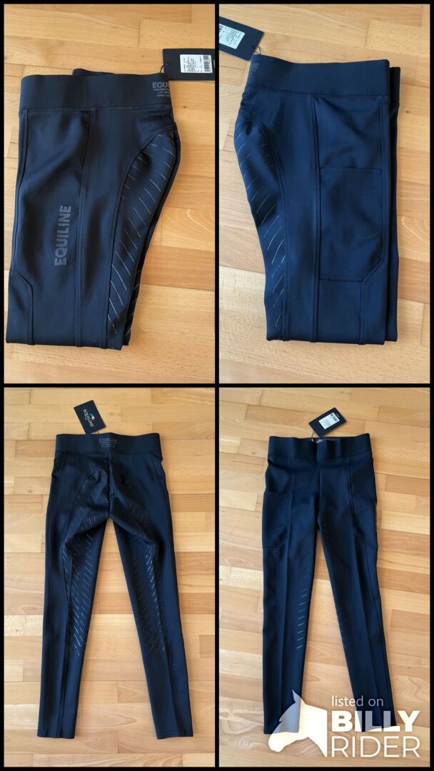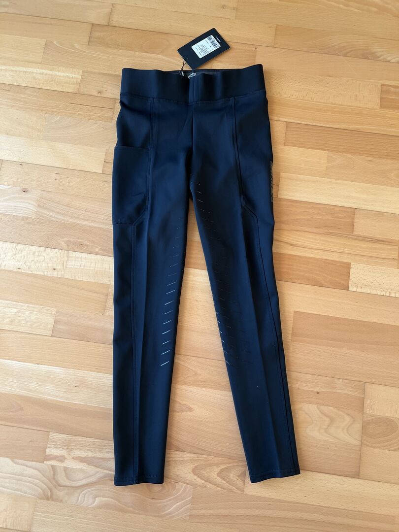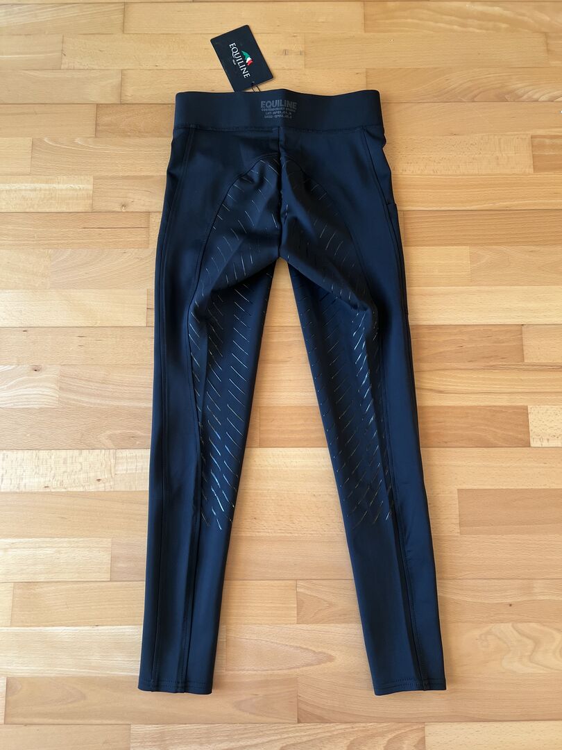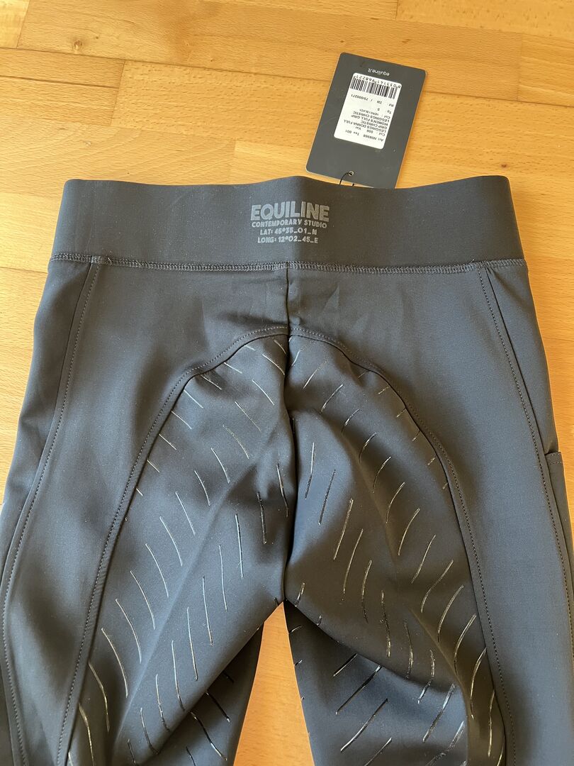 Sprzedam nowe legginsy jeździeckie Equiline Full Grip Christic w kolorze czarnym z kieszonką na telefon komórkowy na prawej nogawce. Plastikowy pełny uchwyt i elastyczny pas. Spodnie są nowe i nigdy nie były noszone.