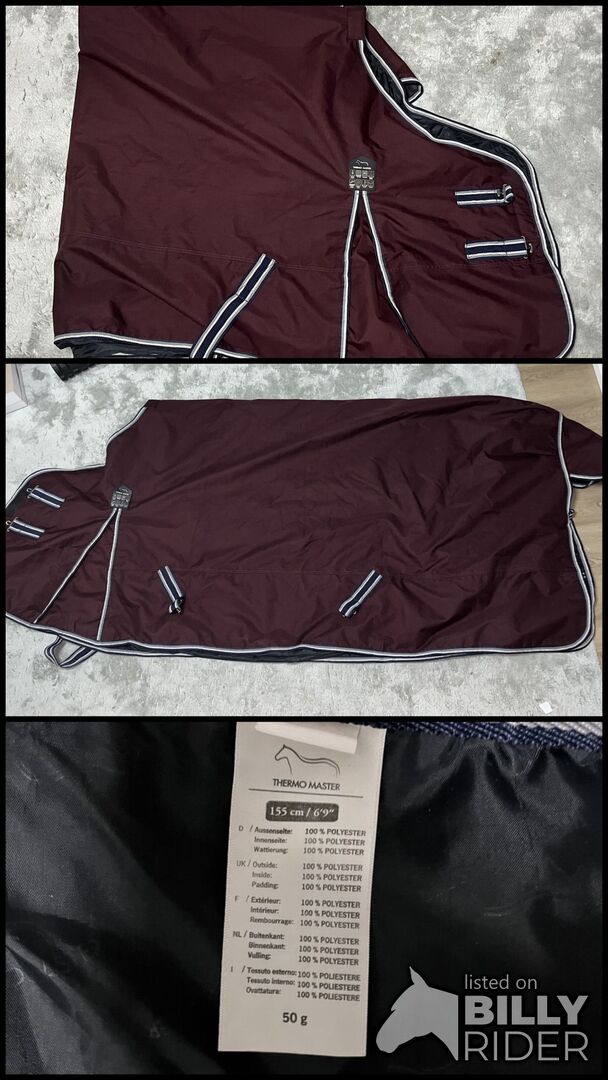 *Nowy* Felix Bühler dywan zewnętrzny Kadir IV, 50g 155cm - Sprzedaję moją nigdy nie używaną derkę przeciwdeszczową 50g (rozmiar 155) od Felix Bühler. Była na koniu tylko raz, aby ją przymierzyć, ale została świeżo wyprana i zaimpregnowana. Derka ma słup wody 3000 mm, klin, krzyżowe zapięcia, klapkę na ogon i możliwość przymocowania pasków na nogi. Dywanik jest również oddychający i mam tylko dobre doświadczenia z tym samym modelem z wypełnieniem 100g. Nowa cena 74,90€