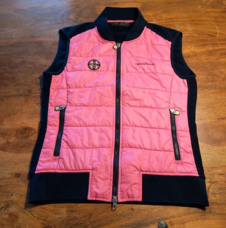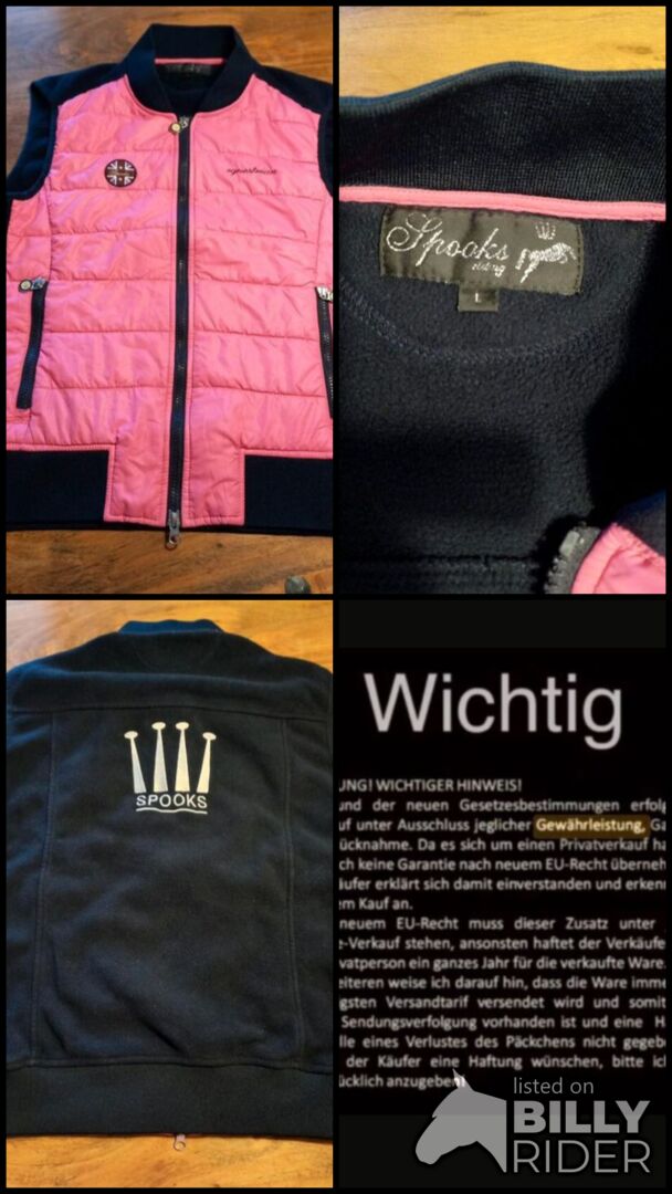 ⭐️Spook⭐️Neuwertige Kamizelka w rozmiarze L - Jak nowa kamizelka od marki Spooks w rozmiarze L producenta. Kamizelka jest pikowana z przodu i wykonana z miękkiego polaru z tyłu i wewnątrz. Kolory to różowy i granatowy. Kamizelka ma dwukierunkowy zamek błyskawiczny i 2 kieszenie na suwak z przodu. Pierwotna cena wynosiła 99 euro.