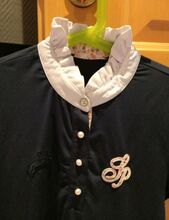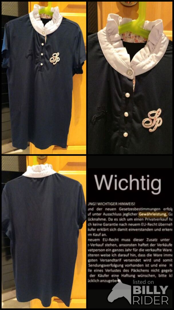 ⭐️Spooks⭐️Neuwertiges Koszulka Show w rozmiarze M - Jak nowa koszulka zawodnicza marki Spooks w rozmiarze M producenta. Kolor: Navy. Posiada perłowe guziki i marszczony kołnierzyk zapinany na zatrzaski. Brak dziur, przetarć itp. Jedynie metka z rozmiarem na kołnierzyku została wycięta. NP koszuli wynosi 80 €.