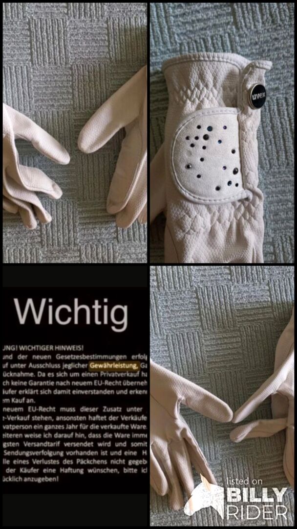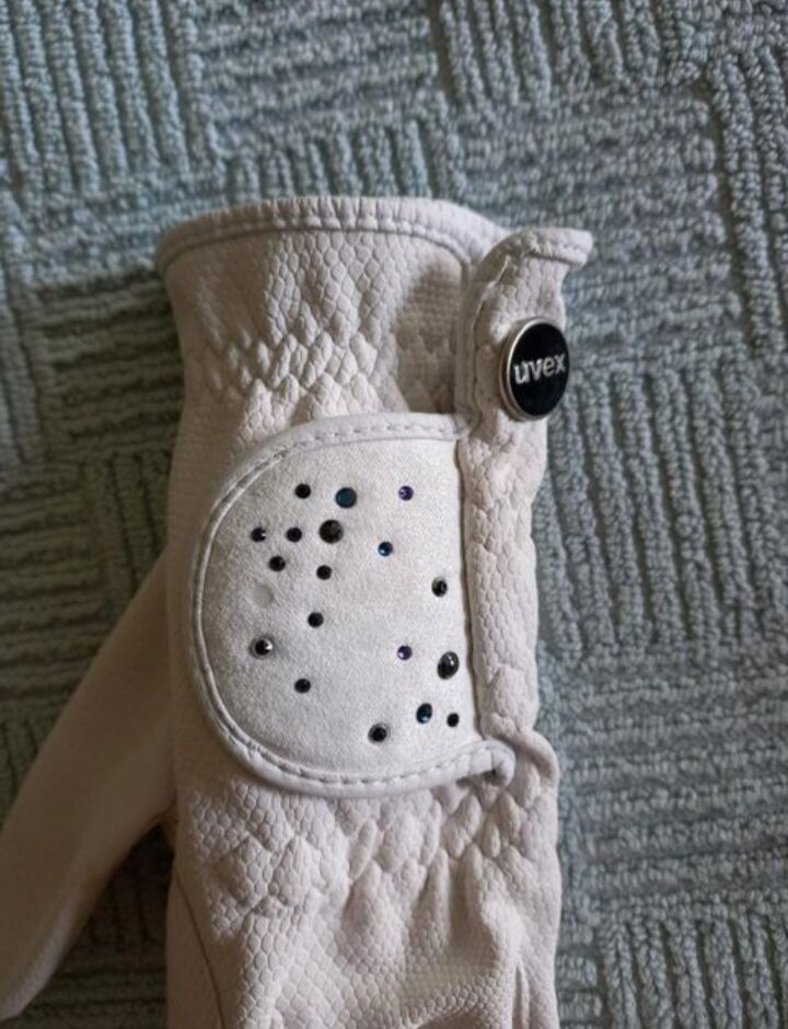 ⭐️Uvex⭐️Turnierhandschuhe w rozmiarze 7.5 - Rękawiczki jeździeckie w bardzo dobrym stanie marki Uvex, Sportstyle Diamond, białe, rozmiar 7,5, wysoka elastyczność, wzmocniony materiał, detale wykonane z kryształków Swarowskiego. Nieznaczne, nieuniknione oznaki zużycia zgodnie ze zdjęciami. NP wynosiła 50 €.