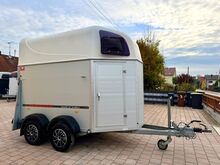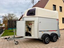 ❗️Wörmann Pikaro Alu Saka przyczepa do przewozu koni Przyczepa do przewozu koni - - Pierwsza rejestracja 07/2019 - Masa własna 710 kg - Dopuszczalna masa całkowita 2000 kg - Maks. obciążenie dyszla 100 kg - HU do września 2027 r. - Podwozie z amortyzatorami do homologacji 100 km/h - 2 opony od 2023 r. - 2 opony od 2025 r. - Zarejestrowana prędkość 100 km/h - Automatyczne koło kopiujące - Otwierane przyciemniane szyby - system antynapadowy - Podnośnik plandeki - Pomoc przy załadunku - Zamykany schowek - Blokada przyczepy - Oświetlenie wewnętrzne - Uchwyt na siatkę na siano - Uchwyty na wiadra z paszą/wodą - Wiadro - Aluminiowa podłoga - Gumowa podłoga - Całkowicie zdejmowana ścianka działowa z PVC z regulowanym drążkiem obrotowym - Zabezpieczenie stopni