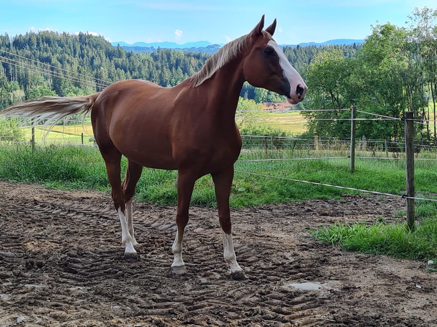 Dlatego chciałabym ją sprzedać jako klacz hodowlaną. Do tej pory urodziła 1 klaczkę po Fürst Fabrice, która ma obecnie 4 lata i również można ją oglądać w gospodarstwie (bez sprzedaży).