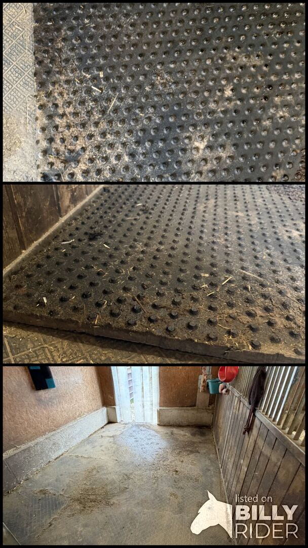 12 Wytrzymałe stabilne maty/maty skrzyniowe 1x1 m - 12 wytrzymałych mat do stajni / boksów dla koni 1x1 m - miękkie dzięki kolcowanemu spodowi Opis: Sprzedaję 12 mat stajennych, każda o wymiarach około 1 x 1 metr. Maty zostały zakupione około 3 lata temu, pierwotna cena w tamtym czasie wynosiła około 900 euro. Maty są szczególnie odpowiednie do stosowania w stajniach dla koni, ponieważ nie są całkowicie sztywne od spodu ze względu na ich kolce, ale oferują bardziej miękką powierzchnię, która jest łatwiejsza dla stawów. Powierzchnia jest wytrzymała i antypoślizgowa, a maty są ciężkie i stabilne. Mogą być używane na przykład do * Boksów dla koni * Przejścia w stajni * Obszar pielęgnacji * Obszar mycia * Inne obszary stajni lub dla zwierząt Maty są używane i mają odpowiednie ślady zużycia wynikające z normalnego codziennego użytkowania w stajni, ale ogólnie są w dobrym, bardzo dobrym stanie. Ponieważ maty do stajni są dość drogie, gdy są nowe, jest to dobra okazja, aby kupić kilka mat jednocześnie po znacznie niższej cenie. Wymiary: około 1 m x 1 m na matę Ilość: 12 sztuk Cena sprzedaży: 500 € Łączna nowa cena: ok. 900 € Dostawa: tylko odbiór własny Jeśli masz jakieś pytania, napisz do nas. +43 664 1663553