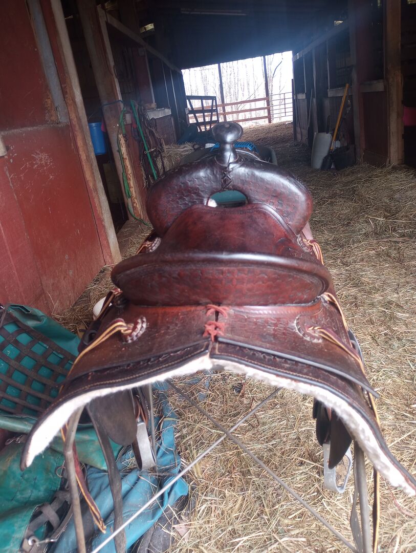 Gorgeous 15" old timers Ranch Slick seat 6" gullet Narrow tree Had some restoration including new fleece a couple years ago. No issues with the saddle, it's in perfect riding condition.