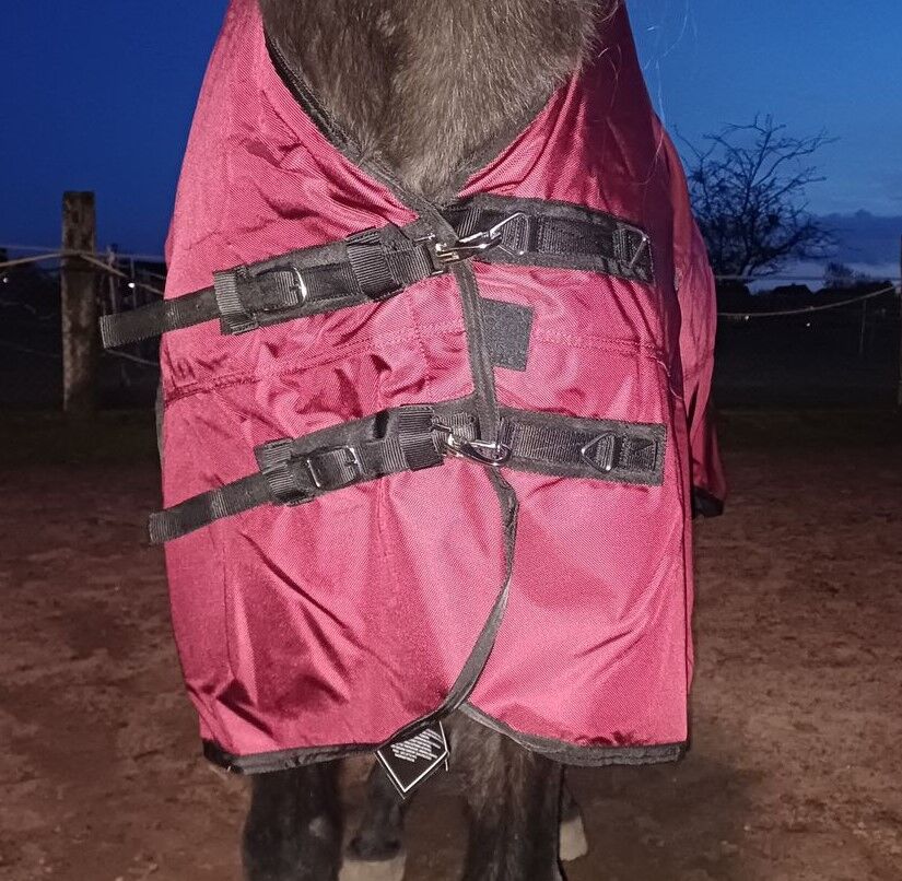 1680D highneck rain 135 145 155 165 dywanik zimowy 50g wine red 5000mm - Nasza najlepiej sprzedająca się całoroczna derka przeciwdeszczowa o gramaturze 50g, często kupowana zimą, a także podczas ulewnego deszczu lub przeciągów w stajni, ze względu na głęboko osadzony śliniak przeciwpotny jest dłuższa o ok. 10 cm, obcisły highneck, pasuje również do koni z szeroką szyją ogiera, w jesiennej ofercie zamiast 169,90 € za 99,00 € za sztukę.