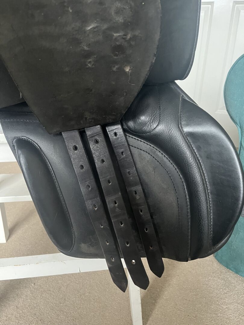 GP black Ideal Saddle 17.5” Very rarely used due to sale of horse, leather all in good nick one scuff on cantle from when stored (pictured) couple of superficial scratches on panel but otherwise almost like new has just been sat around for a while