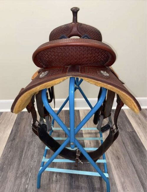Wunderschöner 17" Westernsattel in sehr gutem Zustand, ideal für Freizeitreiten, Ausritte oder Turniere. Der Sattel überzeugt durch seine aufwendige Punzierung und hochwertige Verarbeitung – funktional und optisch ein echter Hingucker.