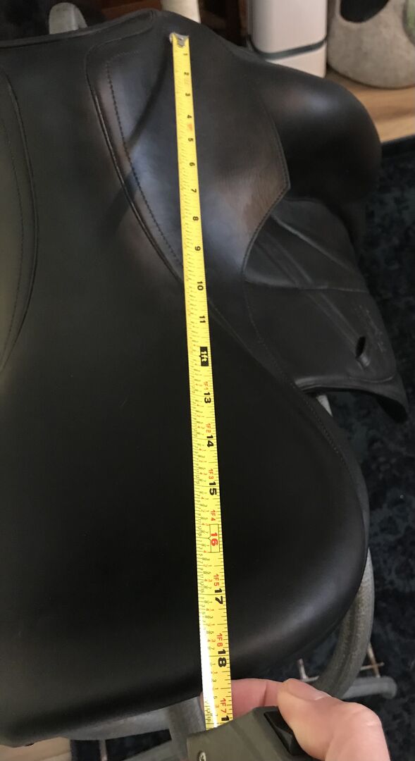 18” Voltaire Adelaide MW 5” tree, mono-flaps are 16.5”. Saddle has less than a years use on it as owner only rode on weekends. Only selling as horse is retired. Was $6300 new, open to reasonable offers.
