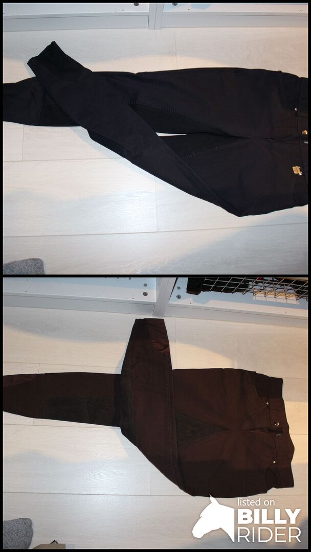 2 Bryczesy z pełnym siedziskiem - Zestaw 2 nienoszonych bryczesów z pełnym siedzeniem firmy HKM. Ciemnoniebieski i ciemnobrązowy. Pasuje do rozmiaru 36