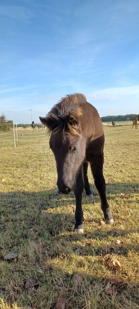 2-letni wałach po Odinn vom Habichtswald - Ölnir vom Nieblumerfeld FEIF-ID: DE2022122870 Urodzony: 29 maja 2022 r. Matka: Mön z Eyrarlandi Ojciec: Odinn vom Habichtswald Płeć: wałach Kolor: czarny ogier o.A.