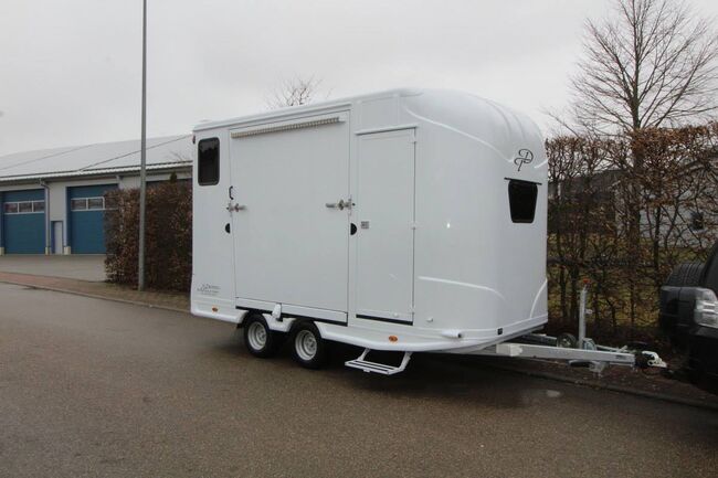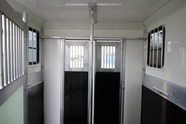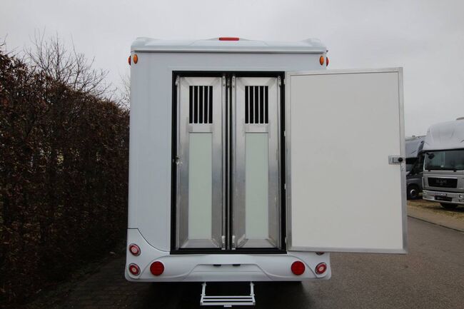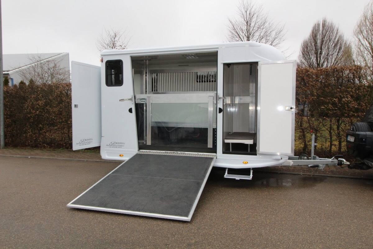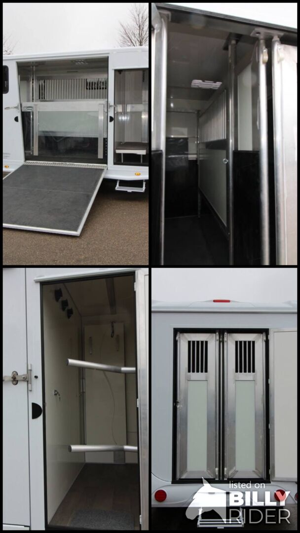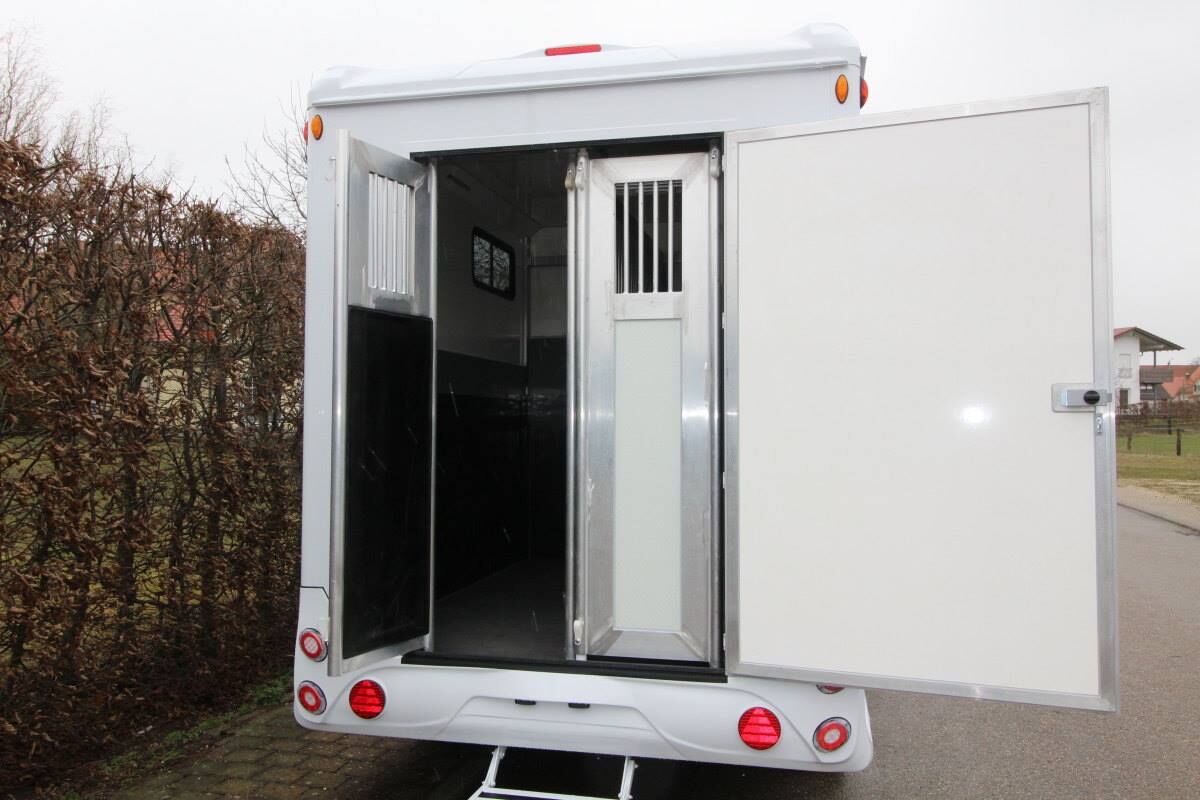 Natychmiast dostępna Wszystkie części w obszarze koni są wyjmowane Przez duże tylne drzwi można również ładować części za pomocą układarki Elastyczna przyczepa z wieloma zaletami