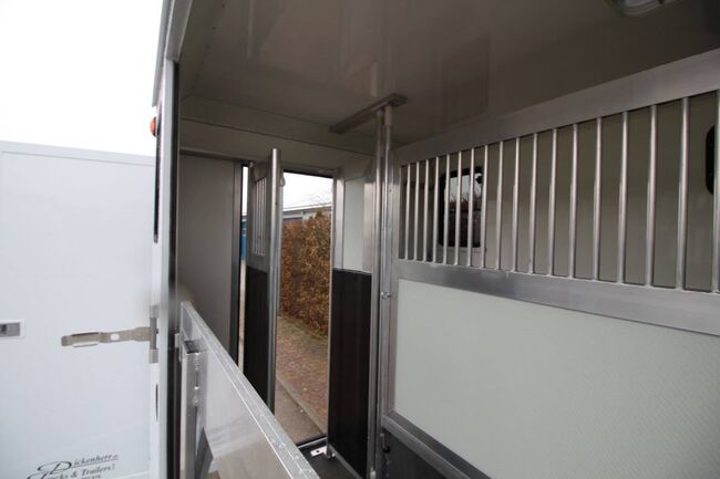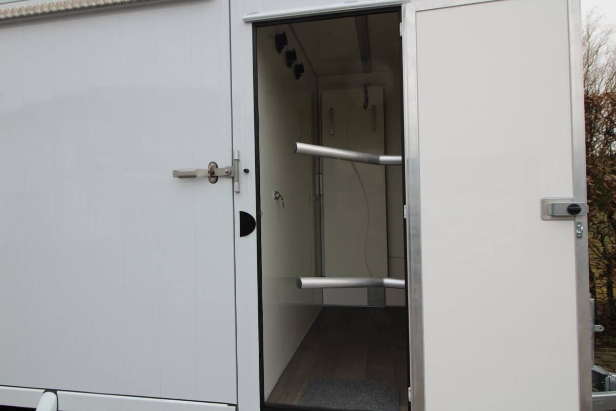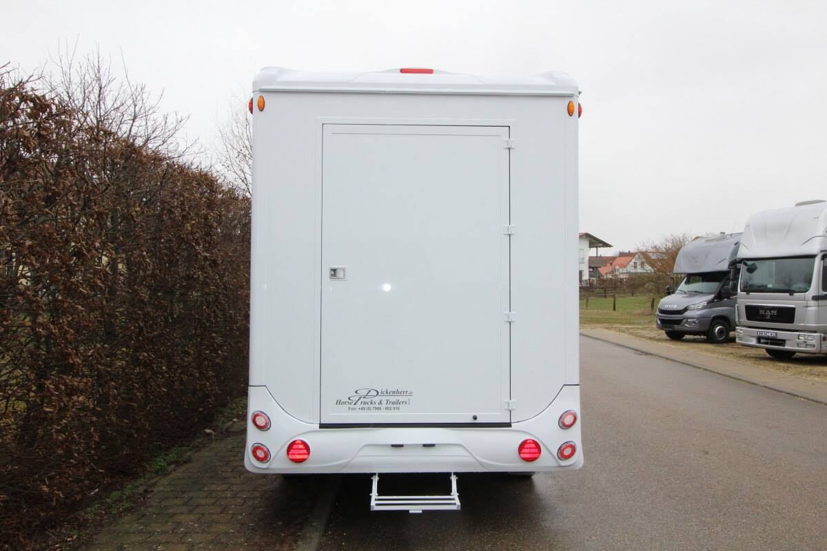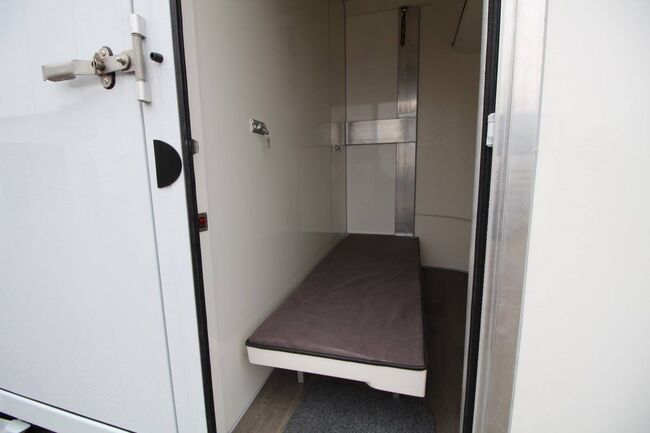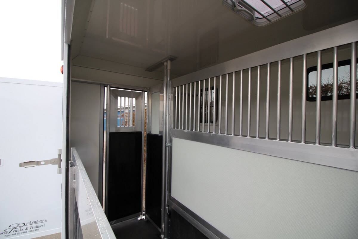 Natychmiast dostępna Wszystkie części w obszarze koni są wyjmowane Przez duże tylne drzwi można również ładować części za pomocą układarki Elastyczna przyczepa z wieloma zaletami