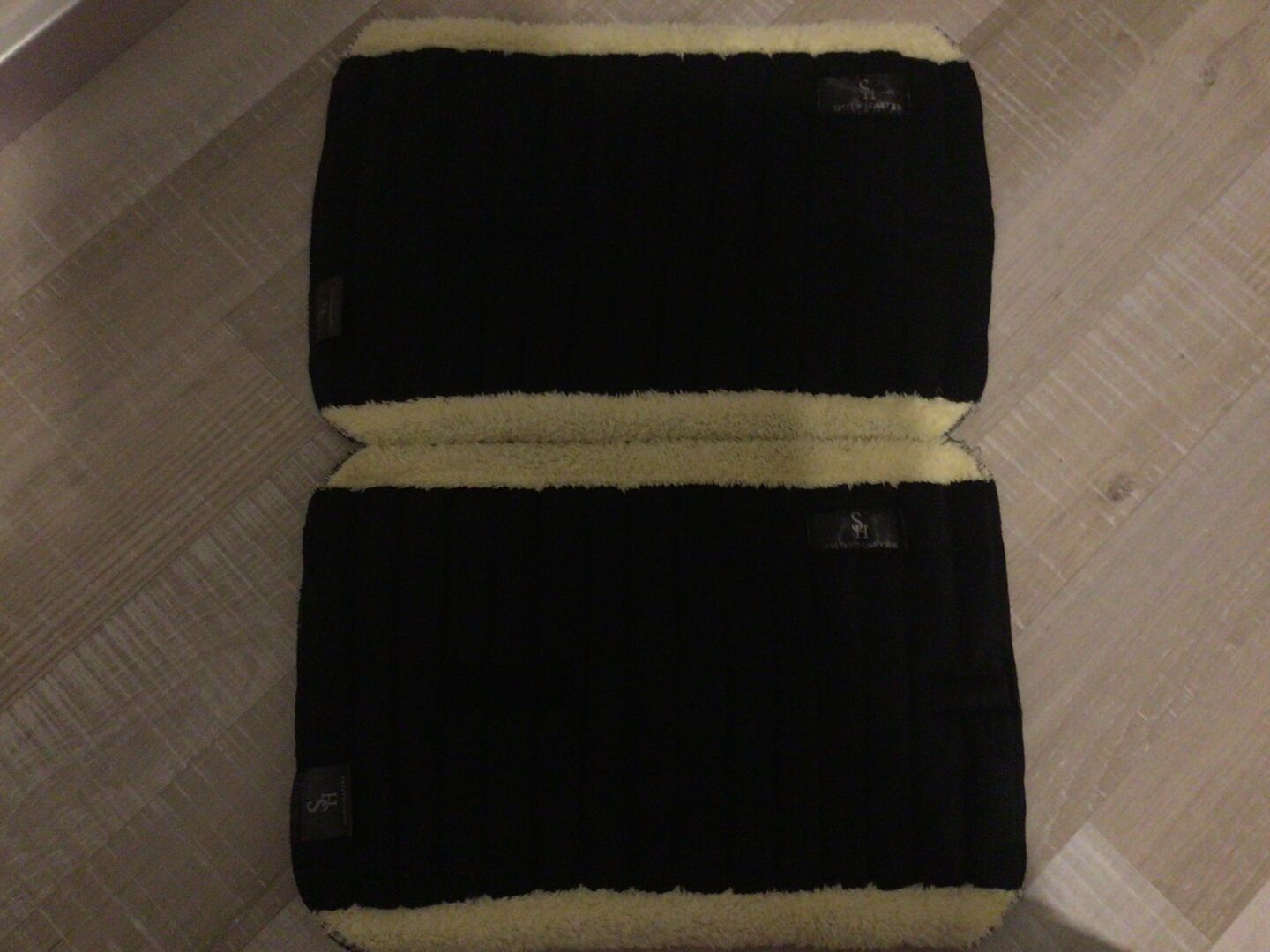 2 Showmaster Bandage Pads czarne z futerkiem - 2 podkładki pod bandaże Showmaster czarne z futerkiem. Nigdy nie były noszone na prawdziwym koniu.