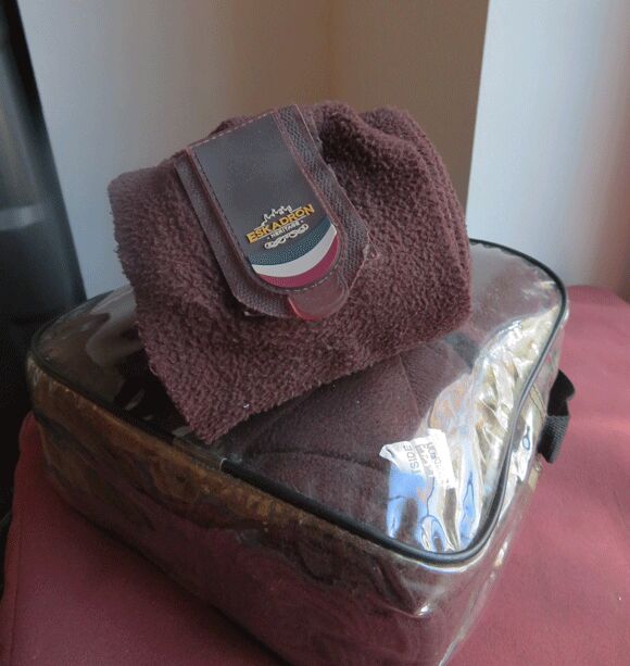 Wegen Aufgabe des Reitsports kommt steht so einiges zum Verkauf _______________________________________________________ Eskadron Fleece-Bandagen 2 Sets, 1 x braun, 1 x beige, benutzt mit Gebrauchsspuren aber i.O., und die Kletts sind natürlich auch tip-top in Ordnung, natürlich auch gewaschen. Der Preis zählt für beide Sets zusammen. Abholung oder Versand für 5€