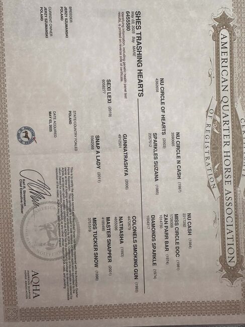This fillies sire has all the good and old bloodlines in him. He was bred and raised by Carol Rose herself. His dam had success in the USA futurity and then went on to win the Derby. His sire had great success in the cowhorse. Nu Circle Of Hearts has produced a Canadian and Polish futurity champion with a very limited foal crop. This fillies dam is built strong and an own daughter of Gunnatrashya! This is her first foal. She is brave, strong and smart. Knows all the basics and started ground work.