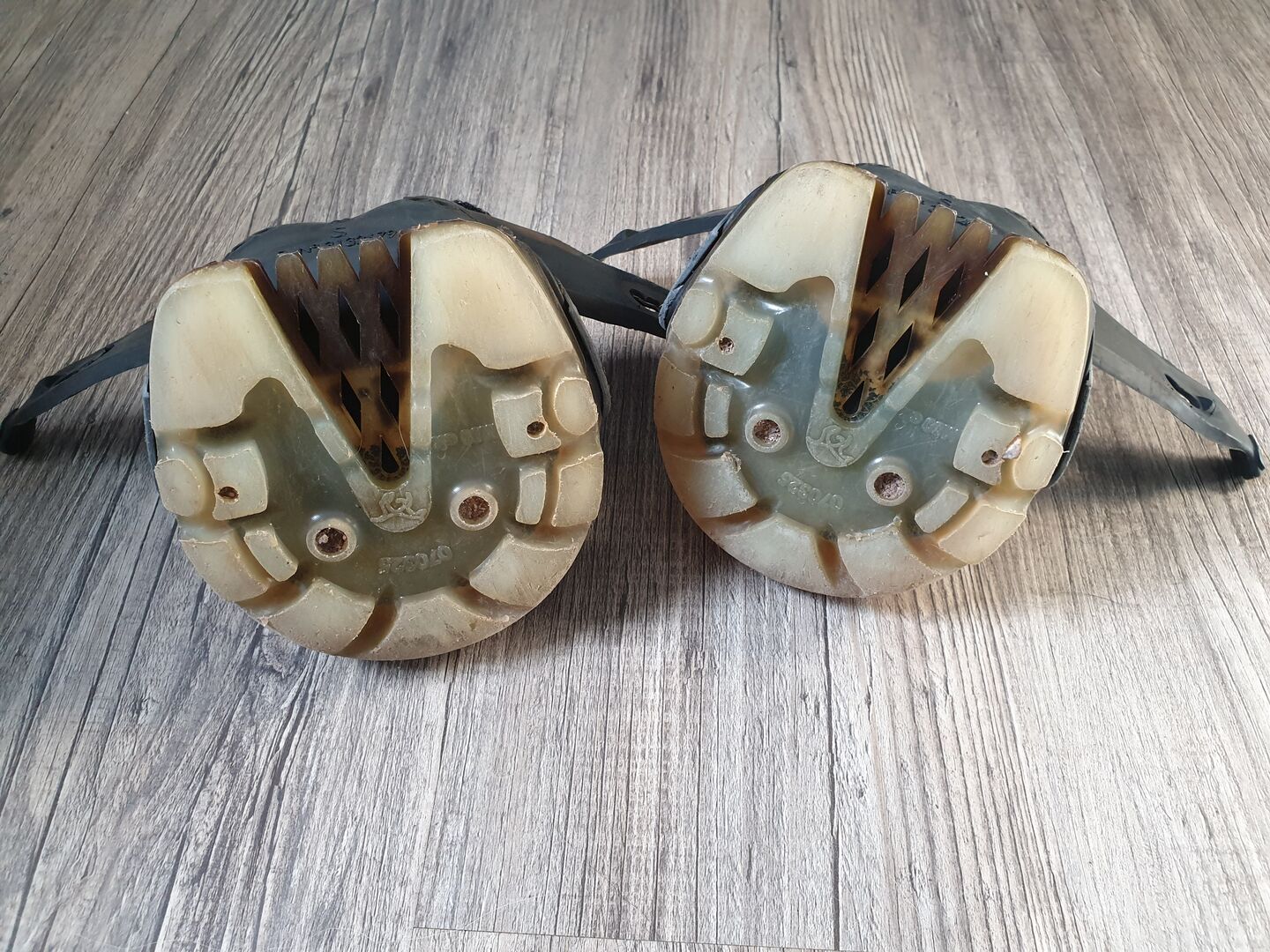 Buty były noszone przez około 1 rok przez 31-letniego kuca o wadze około 400 kg na przednich kopytach, głównie na równym podłożu. Można rozpoznać ślady zużycia, ale bieżnik jest nadal bardzo dobry.