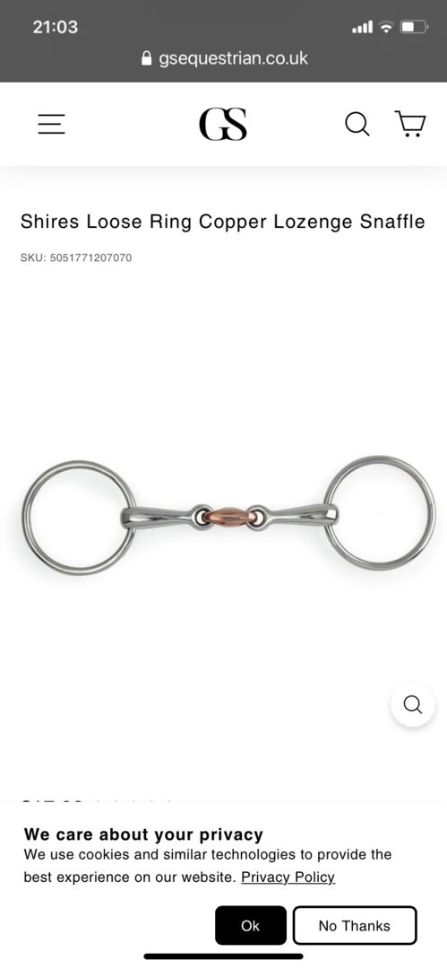 Double jointed with copper lozenge loose ring snaffle 5.5 “ only used few times before trying different bit