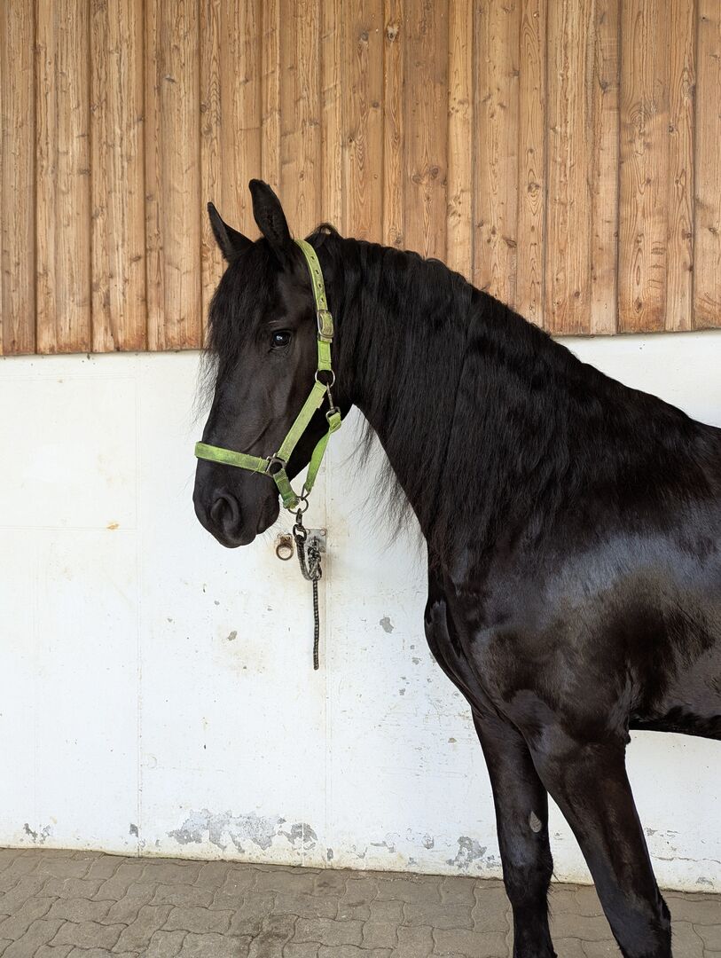 5-letni wałach fryzyjski - Na sprzedaż jest 5-letni wałach o bardzo słodkim charakterze. Jest przytulaśny, zorientowany na ludzi i absolutnie nieskomplikowany w codziennym kontakcie. Nie wykazuje żadnej niegrzeczności.