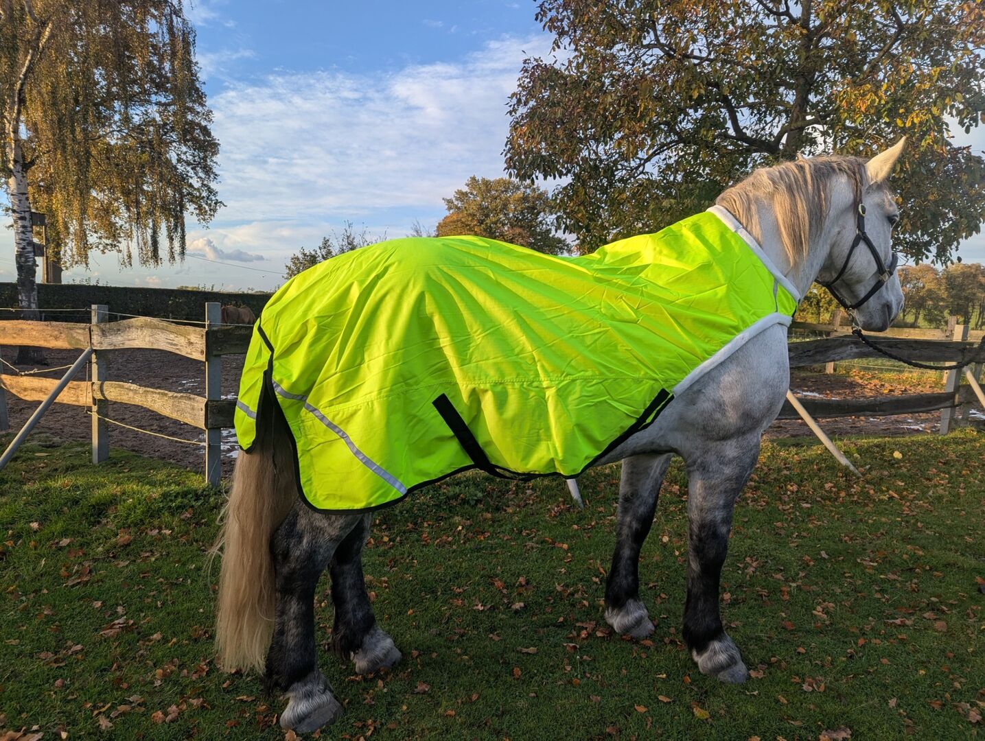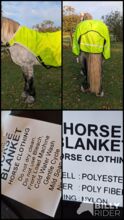 600D Ripstop Epoch specjalny materiał zewnętrzny koca 3000 mm słupa wody fluoro żółty z odblaskowymi paskami, bardzo oddychająca według producenta od -20° do + 45° (patrz etykieta), Polarowa wyściółka na kłębie, szyi i ramionach, klejone szwy, 100% wiatroszczelna, 100% oddychająca, 100% wodoodporny, 100g na plecach, przyjazna dla futra podszewka z tafty od spodu Zapięcie na piersi w kształcie litery T z gumowym pierścieniem zapobiegającym przypadkowemu otwarciu, Krzyżowe szelki z gumowym pierścieniem zapobiegającym przypadkowemu otwarciu, głęboko osadzona klapa na ogon, górna linka ogonowa, dolny pasek z karabińczykiem zapobiega zwijaniu się koca podczas zwijania, z kieszenią na suwak Cena 106,50 €