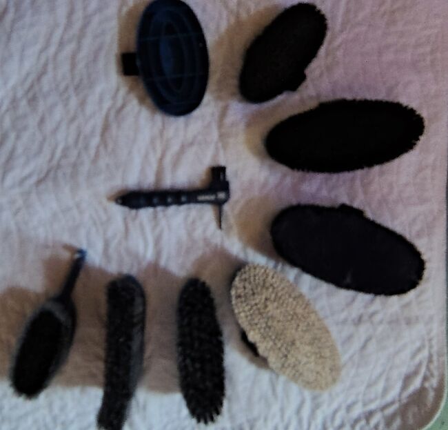 Składa się z 1 szczotka "Diva" z podkładką ze skóry jagnięcej 1 szczotka pielęgnacyjna "Capriole" 1 szczotka do sierści 1 miękka szczotka do przytulania 1 skrobak do kopyt "Joker" 1 miękki grzebień curry "New Generation" 1 Hoof Duo Azzuro 1 mała szczotka do grzywy o długości włosia 8 cm "Mała szczotka" 1 szczotka do ogona i grzywy mała o długości włosia 5 cm