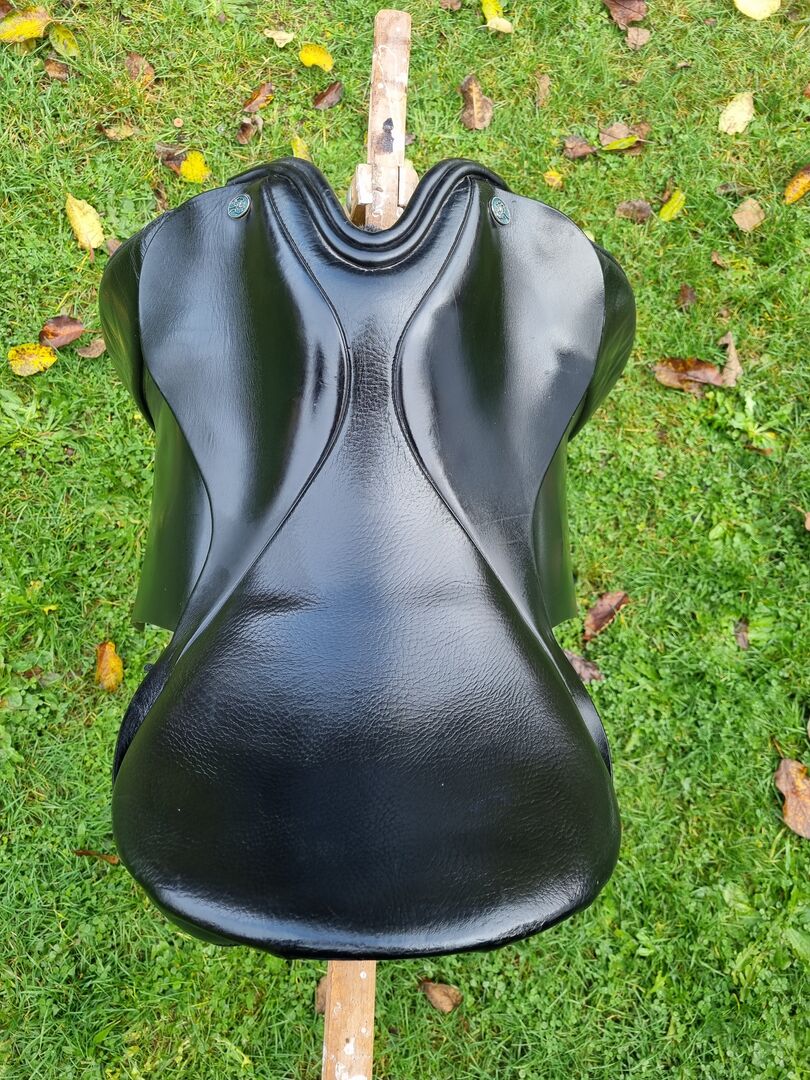 Ainsley Vanguard Dressage Saddle 17 Inch - Oferowane jest siodło ujeżdżeniowe Ainsley 17 cali z regulowaną szerokością kiełzna, dzięki czemu siodło można indywidualnie dopasować do każdego konia. Szerokość wpustu można samodzielnie poszerzyć lub zwęzić za pomocą klucza. Dzięki temu siodło szczególnie nadaje się dla młodych koni lub koni o szerokiej budowie.