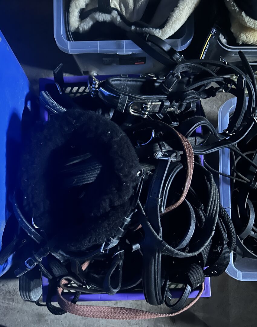 Akcesoria dla koni - Mamy wiele do rozdania, od artykułów skórzanych po koce, buty, bryczesy jeździeckie, boksy pielęgnacyjne, kamizelki ochronne, uzdy, lejce, skóry jagnięce itp. Niektóre do rozdania, inne na sprzedaż. Jeśli jesteś zainteresowany, daj nam znać, a być może będziemy mieli coś dla Ciebie.