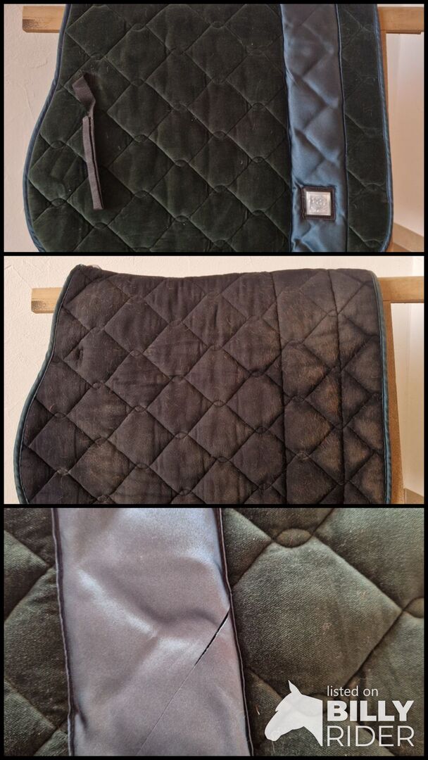 Aksamitna podkładka pod siodło w kolorze leśnej zieleni - Niestety ma rozcięcie z boku.