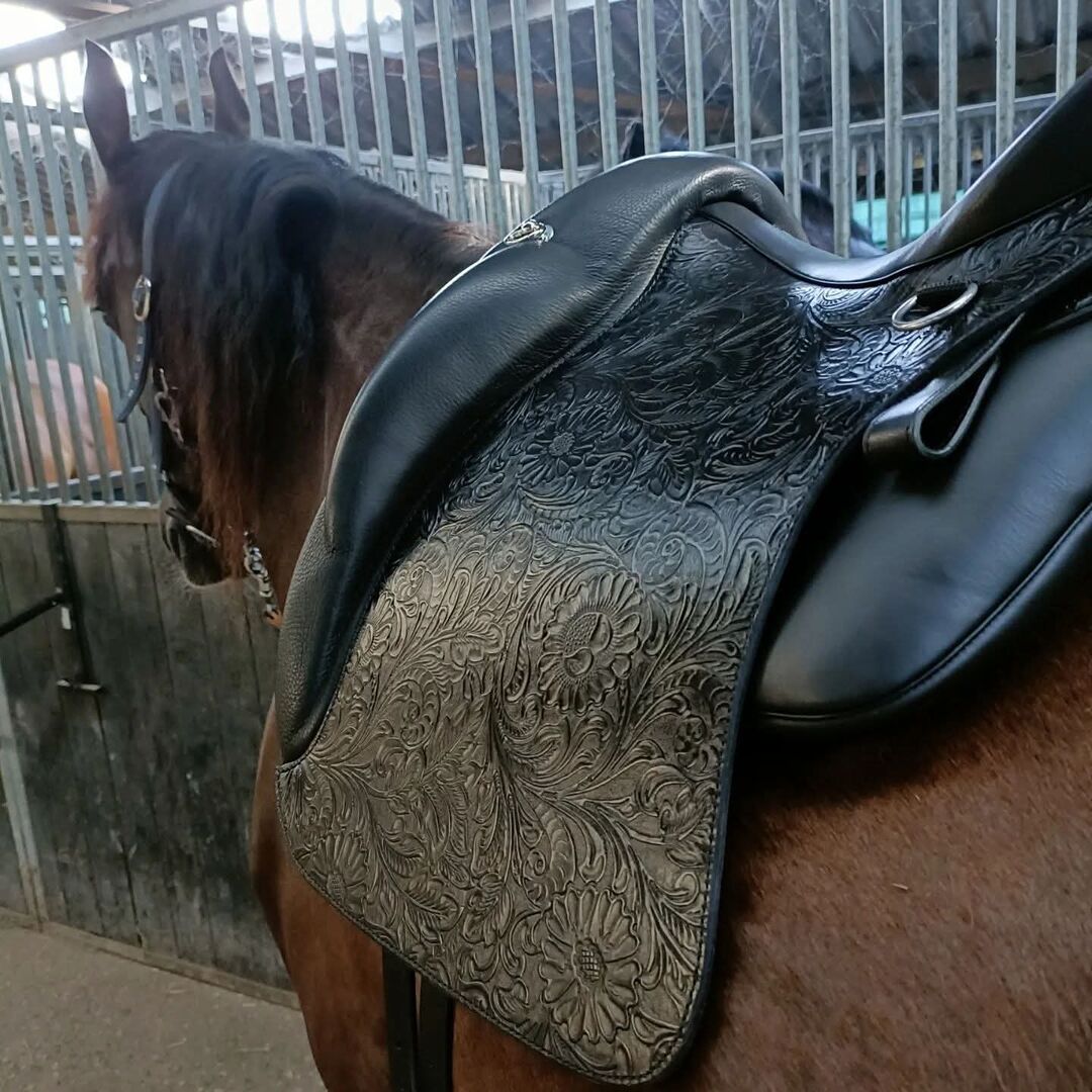 Nadal w bardzo dobrym stanie. 18 cali (pasuje również do siodeł 17,5" ze względu na wyściółkę). Pięknie wykończone srebrnymi detalami. Używany przez około rok. Zawiera dwa popręgi ujeżdżeniowe Iberosattel: jeden skórzany i jeden neoprenowy. Obejmuje dopasowanie do siodła i numer identyfikacyjny.