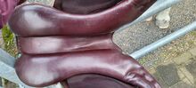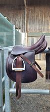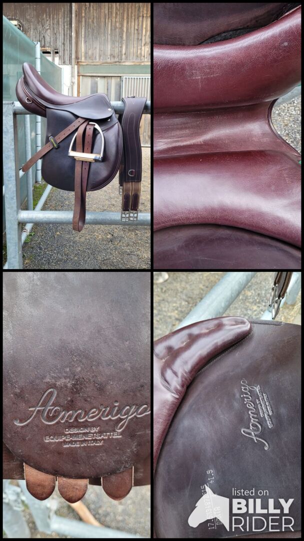Amerigo 17,5 - Na sprzedaż piękne, czerwono-brązowe siodło skokowe Amerigo dla raczej krótkich koni. Siodło jest trochę starsze, ale było używane nieregularnie przez dwa lata. Potem leżało w szafie jako zapasowe, ale niestety jest trochę za krótkie na mojego kuca (okrągło-żebrowane, prosty grzbiet i małe podbicie) Nie został jeszcze wyczyszczony na zdjęciach i ma niewielkie oznaki zużycia, ale poza tym jest w doskonałym stanie. Idealne dla mniejszych, wąskich jeźdźców