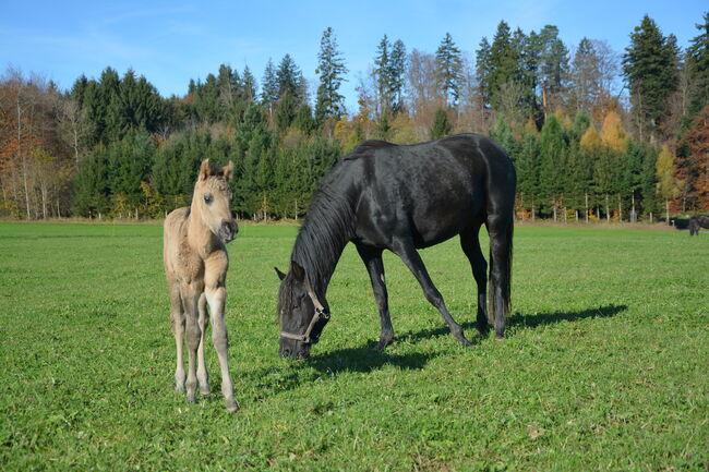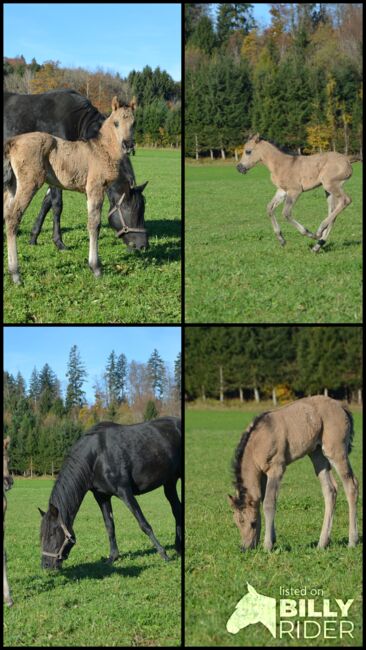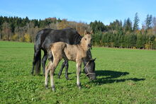 Nasza młoda klacz dorasta w 100% czystej krwi w nienaruszonej strukturze stada - razem z ogierem, klaczami i źrebiętami, co daje jej stabilne zachowania społeczne i zdrową pewność siebie. Już teraz jest wyjątkowo zorientowana na ludzi, bardzo ufna, ciekawska, przytulaśna i poznaje nowe rzeczy z wielkim zainteresowaniem i opanowaniem. Na łące jest żywiołowa i pełna energii - przyciąga wzrok i ma w sobie mnóstwo charyzmy!
