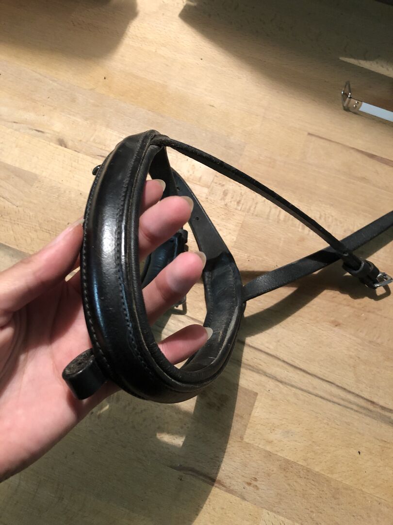 Angielski kombinowany nosek - Angielski łączony pasek na nos z wyściółką Zawiera pasek blokujący (brakuje tylko na zdjęciach, będzie dostępny) Nie przechodzi przez szyję, może być zapinany indywidualnie