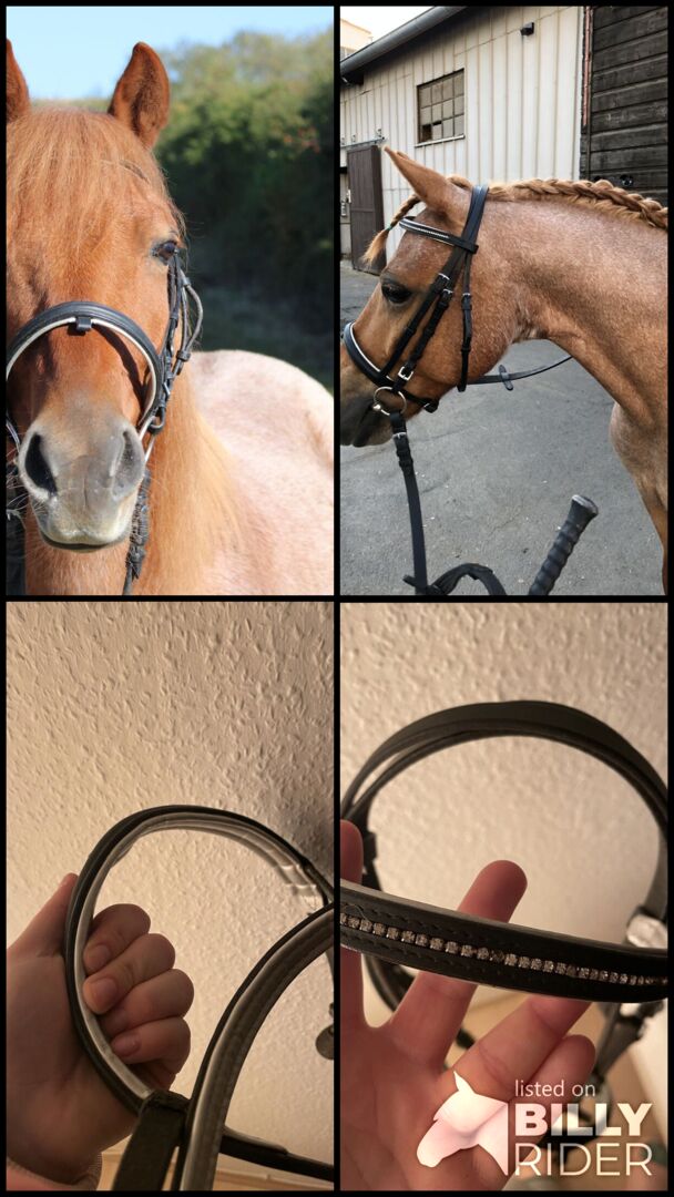 Angielski snaffle kombinowany - Na sprzedaż angielski kombinowany snaffle dla kucyków. Był używany przez niecałe 6 miesięcy. Pasek barierowy nie jest dołączony. Brakuje 2-3 gwiazdek w opasce na brwi.