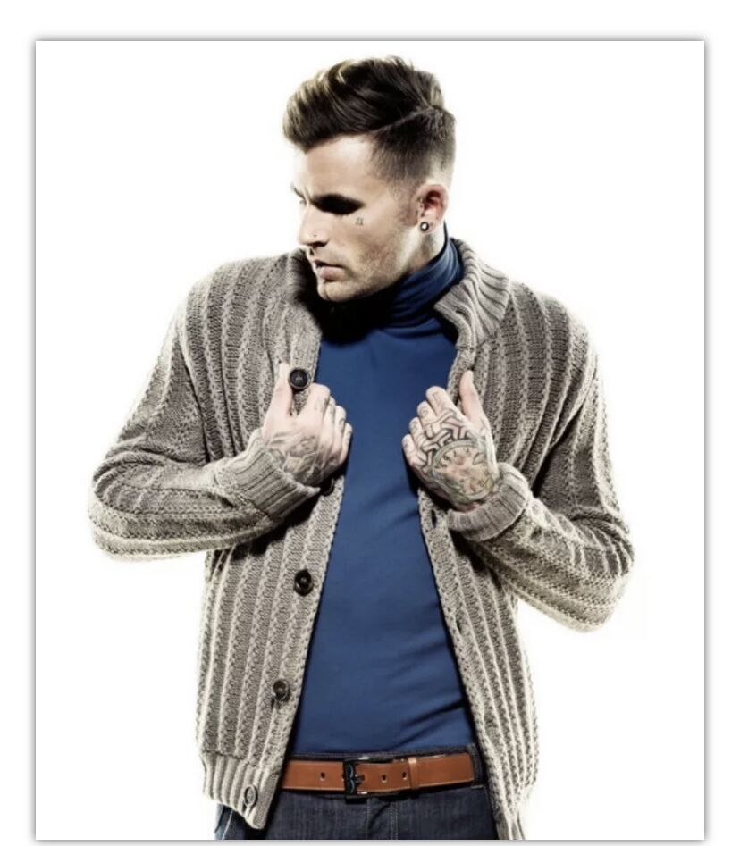 Piękny męski kardigan z doskonałym wzorem dzianiny i dużymi guzikami.