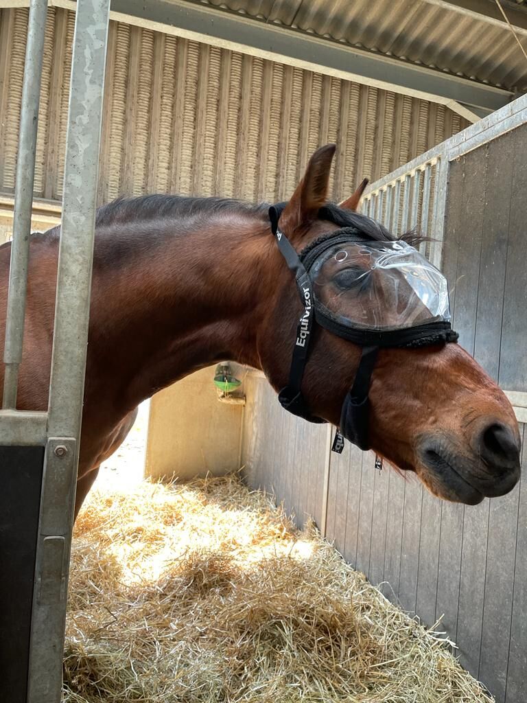 Aniprotec Equivizor Eye Protection UV Mask Horse COB - Sprzedaż maski ochronnej na oczy firmy Equivizor. Maska została zakupiona ze względu na operację oczu, założona tylko 2-3 razy, gdyż była trochę za mała. Do maski dołączone są również miękkie wkładki. W zestawie znajduje się torba do przechowywania. Rozmiar COB. NOWA CENA: 249,00€