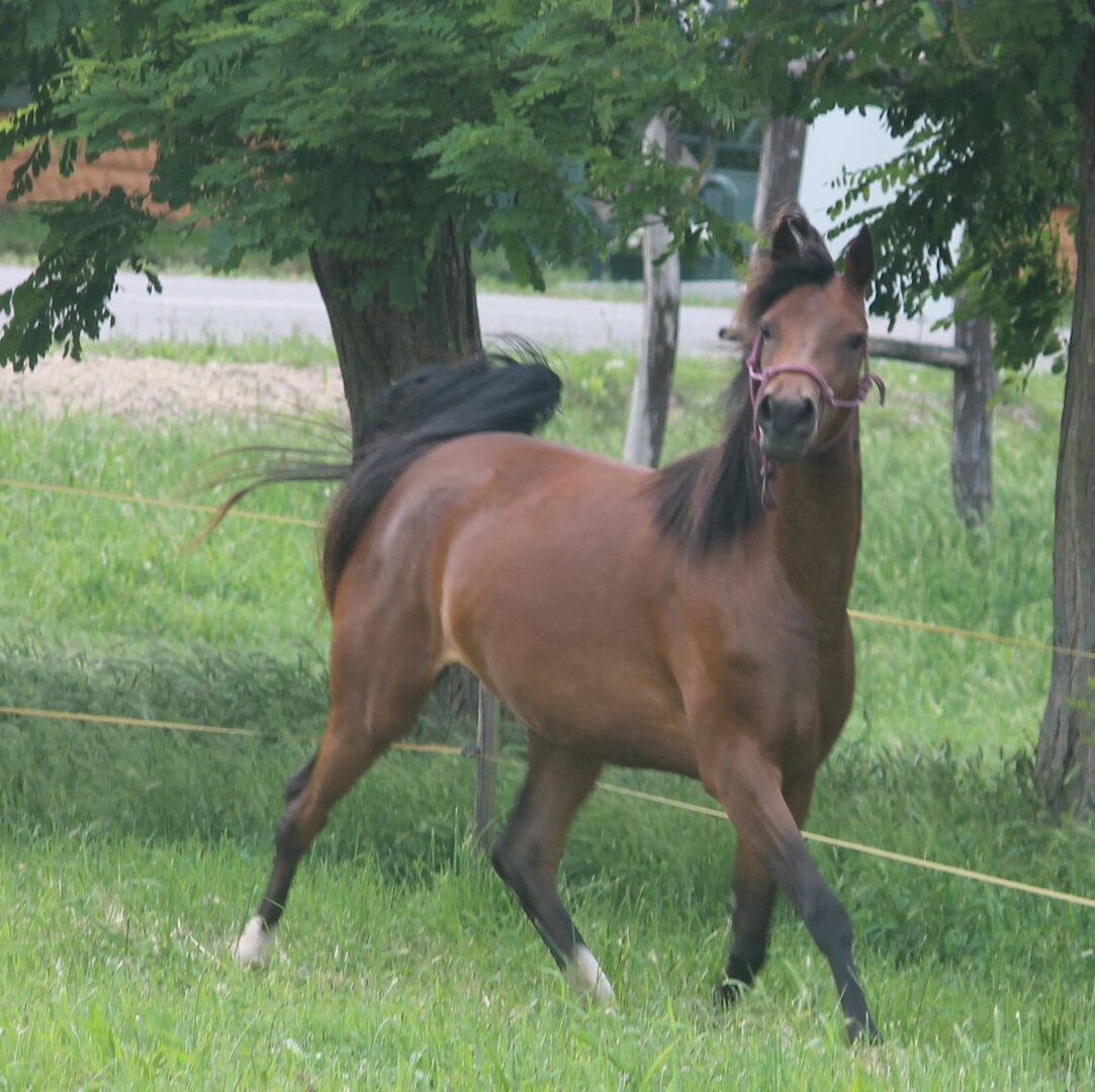 Ihr Vater ist ein wunderschöner schwarzer arabischer Vollbluthengst, der aus der Slowakei nach Ungarn importiert wurde. Mam kopię rampy ojca, a on ma w niej wiele amerykańskich linii. Ich habe ihn mit Aïshas Besitzerin besucht und mich soforth verliebt. Ich habe sein DNA-Zertifikat von den Behörden in der Slowakei erhalten. (W Slowakei urodzone dzieci otrzymują obowiązkowy certyfikat DNA).