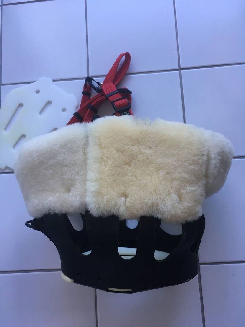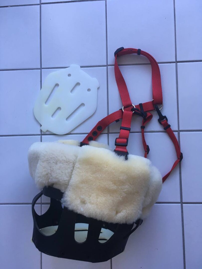 W zestawie znajduje się kompletny zestaw ochraniaczy ze skóry jagnięcej od producenta - przód nosa oraz tył i boki, a także dwa ochraniacze na zęby - "normal slit" i "diet plate", oba gumowe. Nowa wartość wszystkich części razem - 180€.