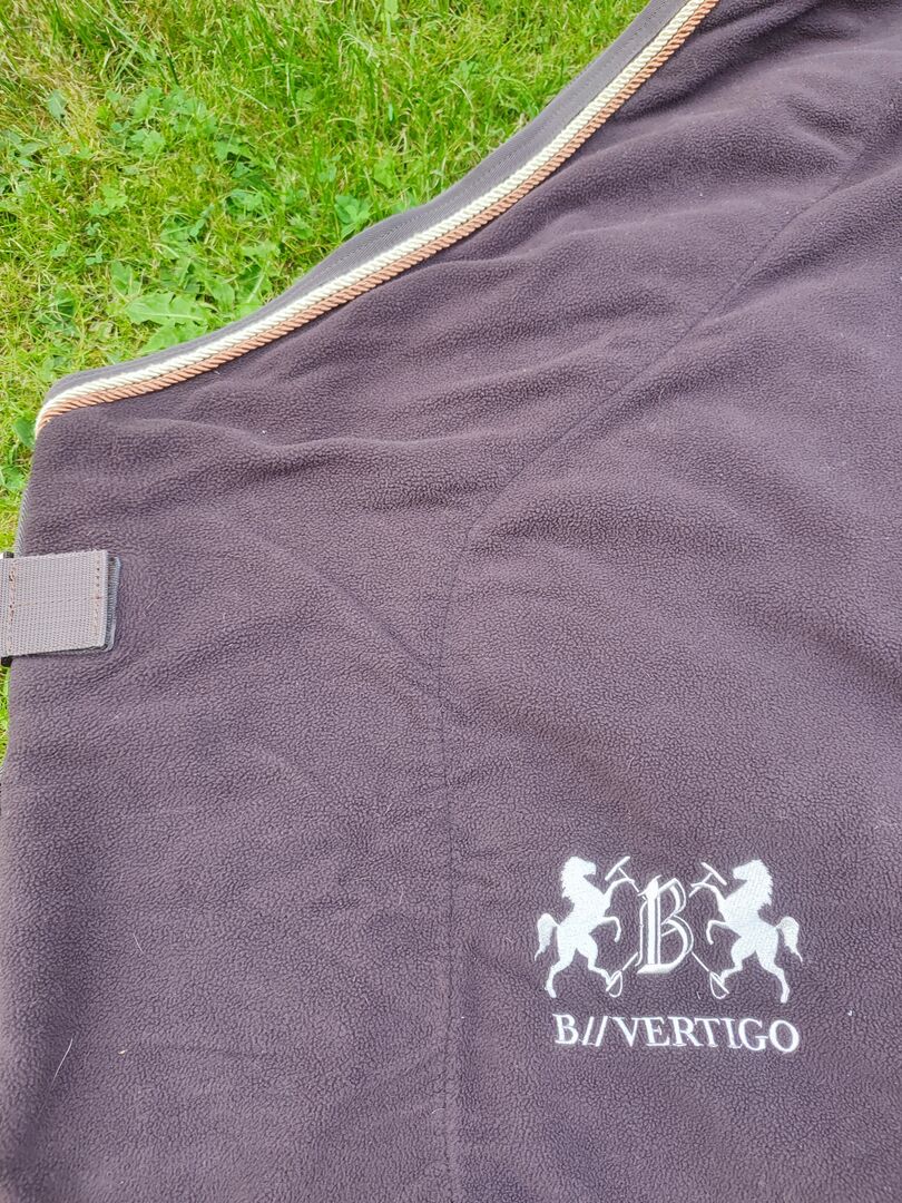 B Dywanik przeciwpotny Vertigo / dywanik polarowy / dywanik paradny rozmiar 155 - Ciemnobrązowy dres marki B Vertigo w rozmiarze 155 z grubym złotym plecionym sznurkiem i podwójną lamówką. Normalne ślady użytkowania, ale mało używany i świeżo wyprany.