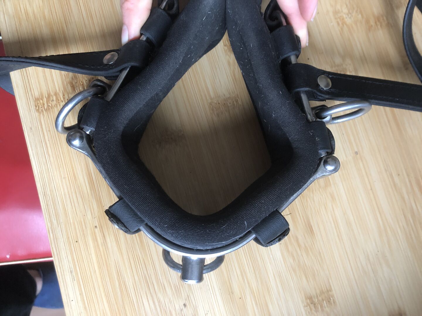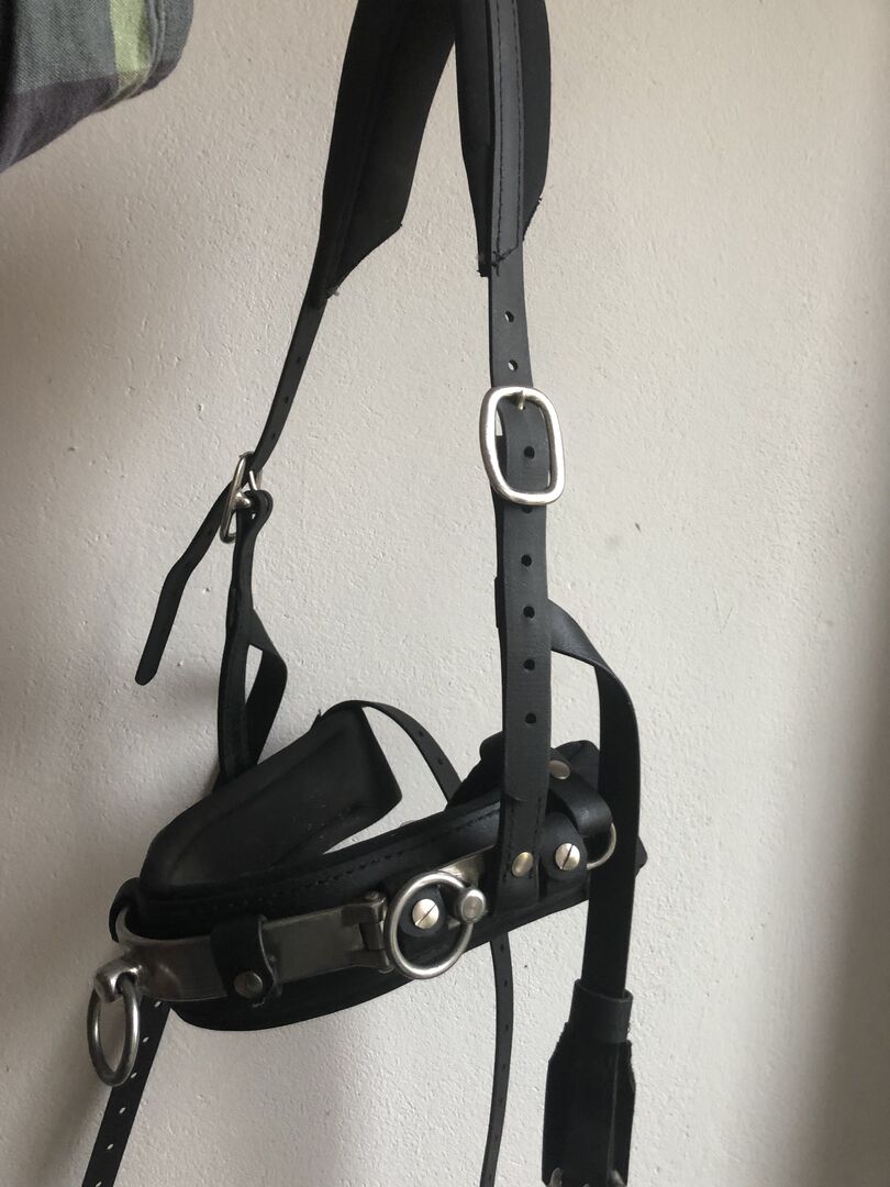 Babette Teschen cavesson - Naprawdę świetny, przyjazny dla konia kawecan wykonany z biotanu. Część nosowa i naczółek są miękko wyściełane. To, co jest naprawdę świetne w tym wodze, to fakt, że pasek na nos jest podzielony na trzy części i ma dwa przeguby. Dzięki temu jest wyjątkowo elastyczny i można go dopasować do każdego kształtu głowy (patrz zdjęcie, na którym ściskam stawy razem). Jest trochę zakurzony w kilku miejscach, ale poza tym nie ma śladów zużycia (co jest zabawne - używałam go dużo i prawie zawsze na brudnych koniach :D). Wszystkie moje konie, nawet te bardzo sceptyczne, dobrze go zaakceptowały. Pierwszy i jedyny cavesson, w którym tak się stało! Nawet sprzączki są wyściełane.