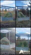 Stojak na siano zapewnia koniom osłonięte miejsce do karmienia na pastwisku lub w otwartej stajni. Dzięki solidnej konstrukcji i odpornemu na warunki atmosferyczne materiałowi, siano pozostaje suche i czyste, idealne na każdą porę roku. Idealny do delikatnego karmienia i zmniejszania strat paszy.