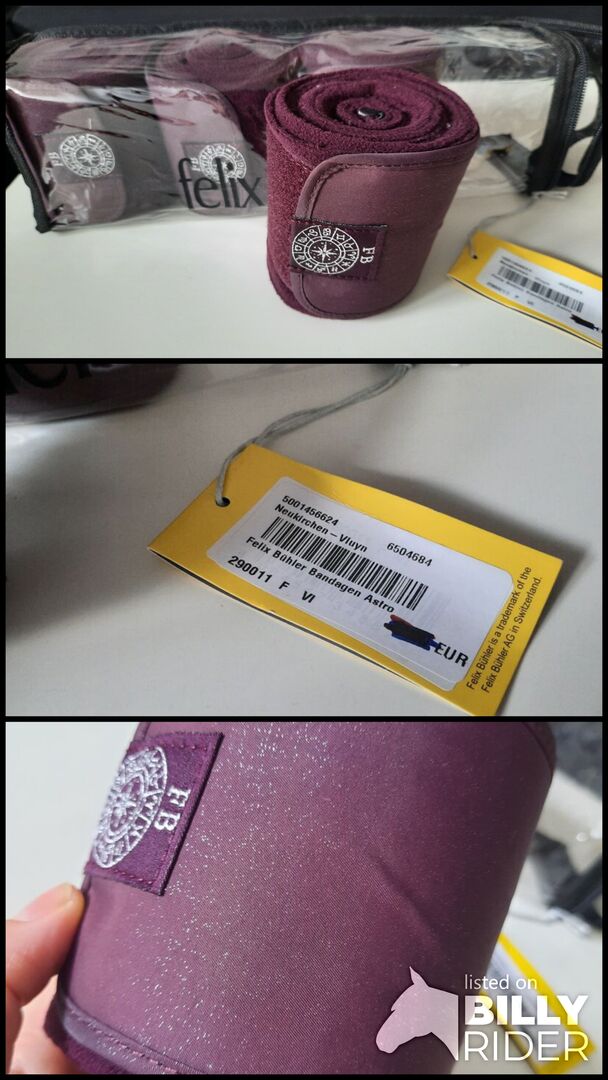 Bandaże, pełne, ciemnofioletowe/błyszczące - Nigdy nie używane bandaże, rozmiar pełny, w pięknym ciemnofioletowym kolorze. Rzep na końcu jest pokryty połyskującym materiałem - patrz zdjęcie.