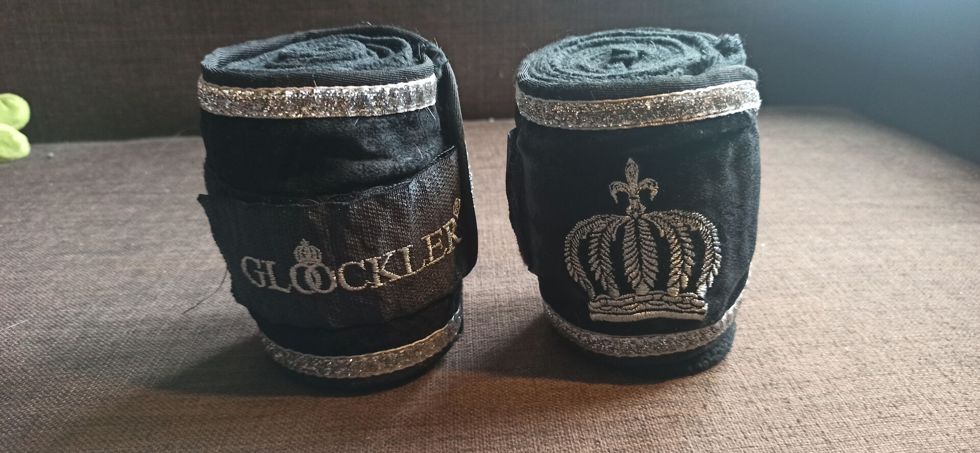 Bandaże Pony Cob VB 2,10m Glööckler black silver - Oferta pary czarnych bandaży ze srebrną lamówką i brokatem firmy Harald Glööckler. Bandaże są w idealnym stanie. Jeśli masz jakieś pytania po prostu napisz do mnie. Będą sprzedawane świeżo wyprane Zapraszam do ponownego przejrzenia moich ogłoszeń.